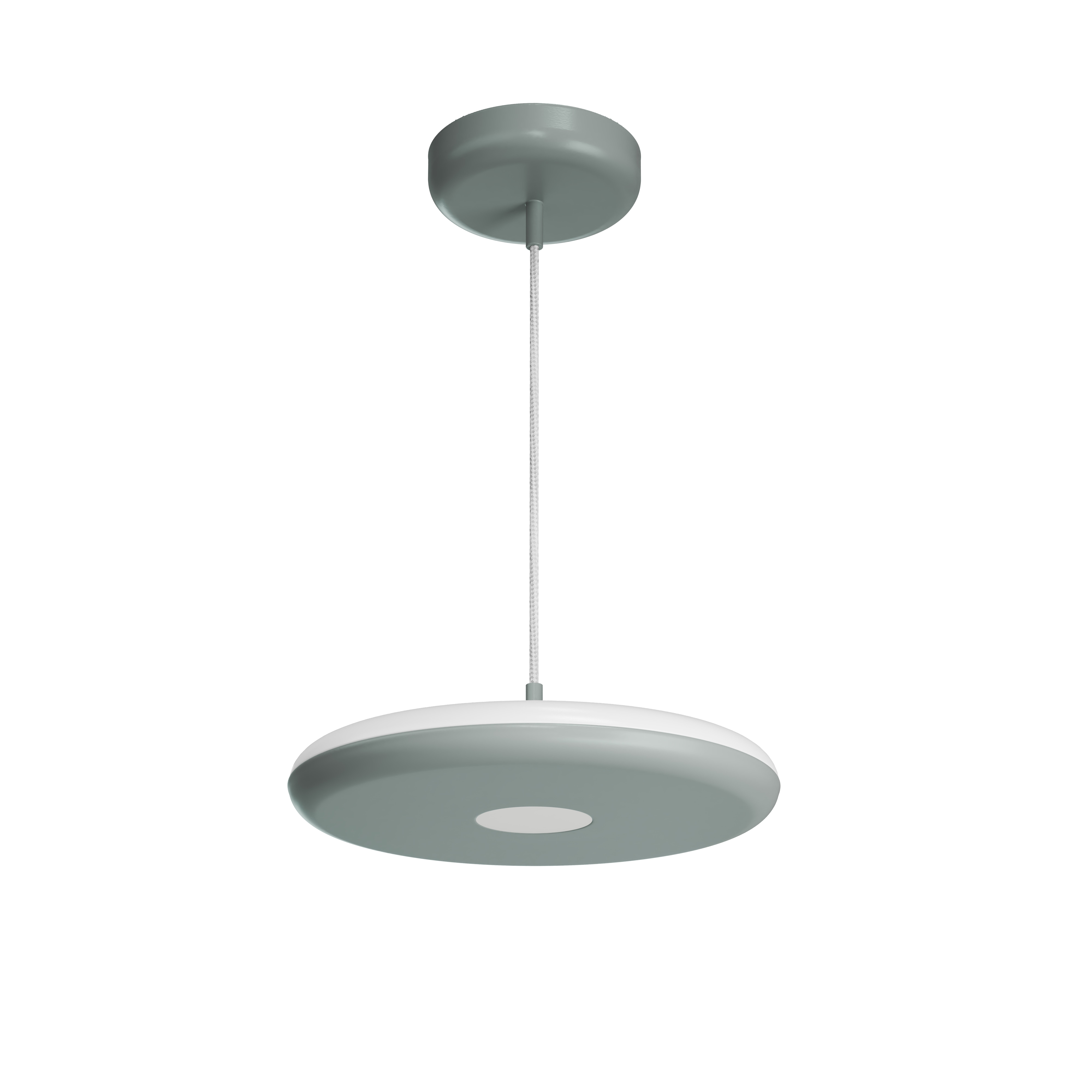 Šedé závěsné LED svítidlo ON/OFF s nepřímým svícením a matovaným PMMA stínidlem. Textilní kabelový závěs s vnitřním nosným lankem o délce 100 cm.