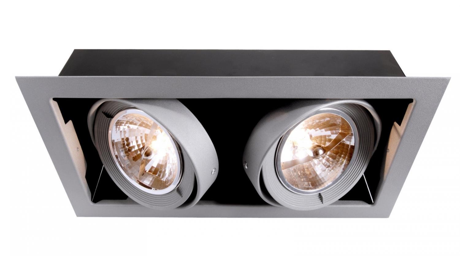 stropní svítidlo, Kardan, bez světel.zdroje, symetrické, 220-240V AC/50-60Hz, počet patic: 2, G12, 70W, 2x výklopné, litina hliníku, stříbrná matná, IP 20, délka: 372 mm, šířka: 211 mm, výška: 185 mm, mont.otvor délka: 345 mm, mont.otvor šířka: 185 mm, provozní teplota: -5°C - +40°C