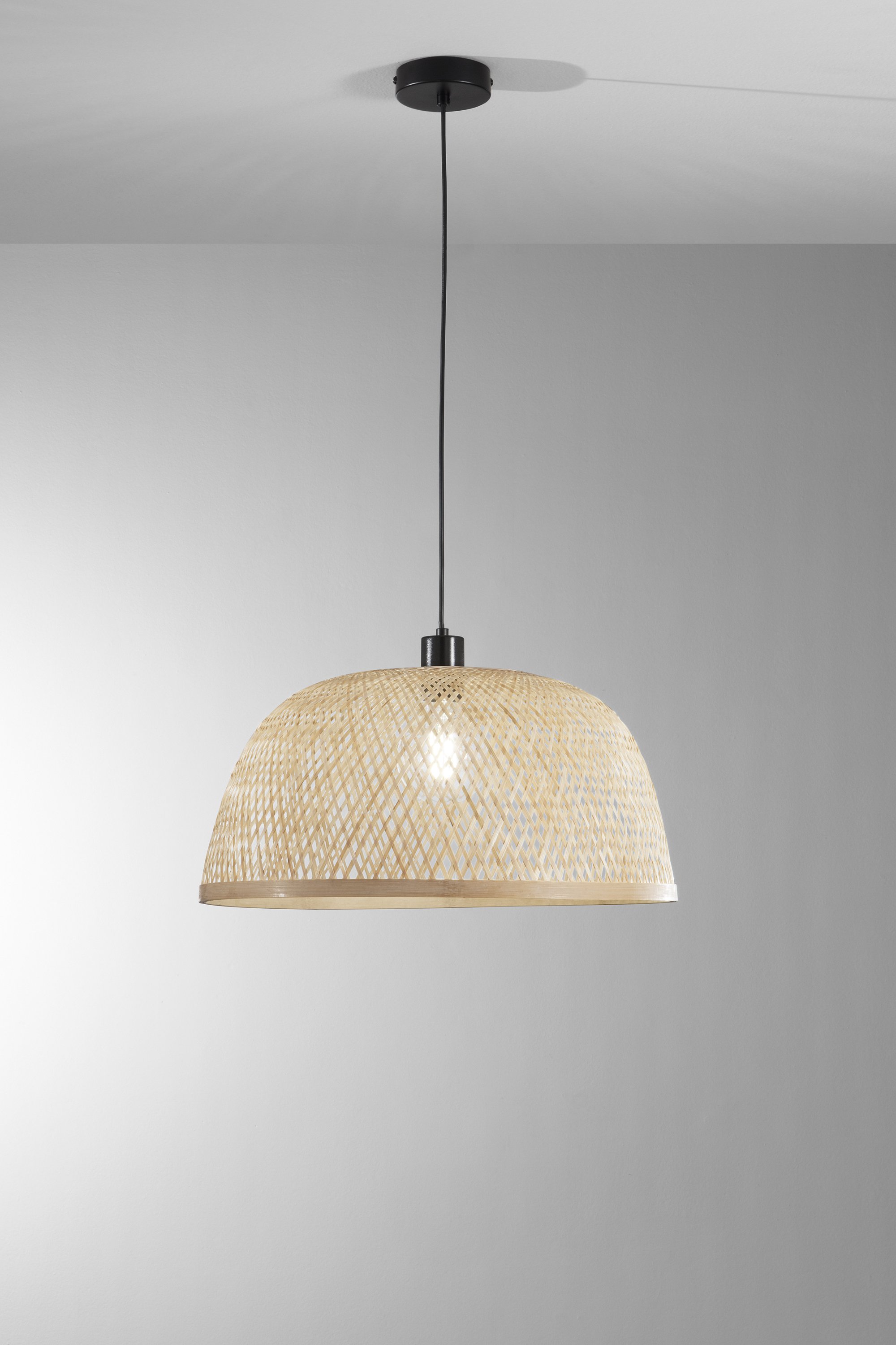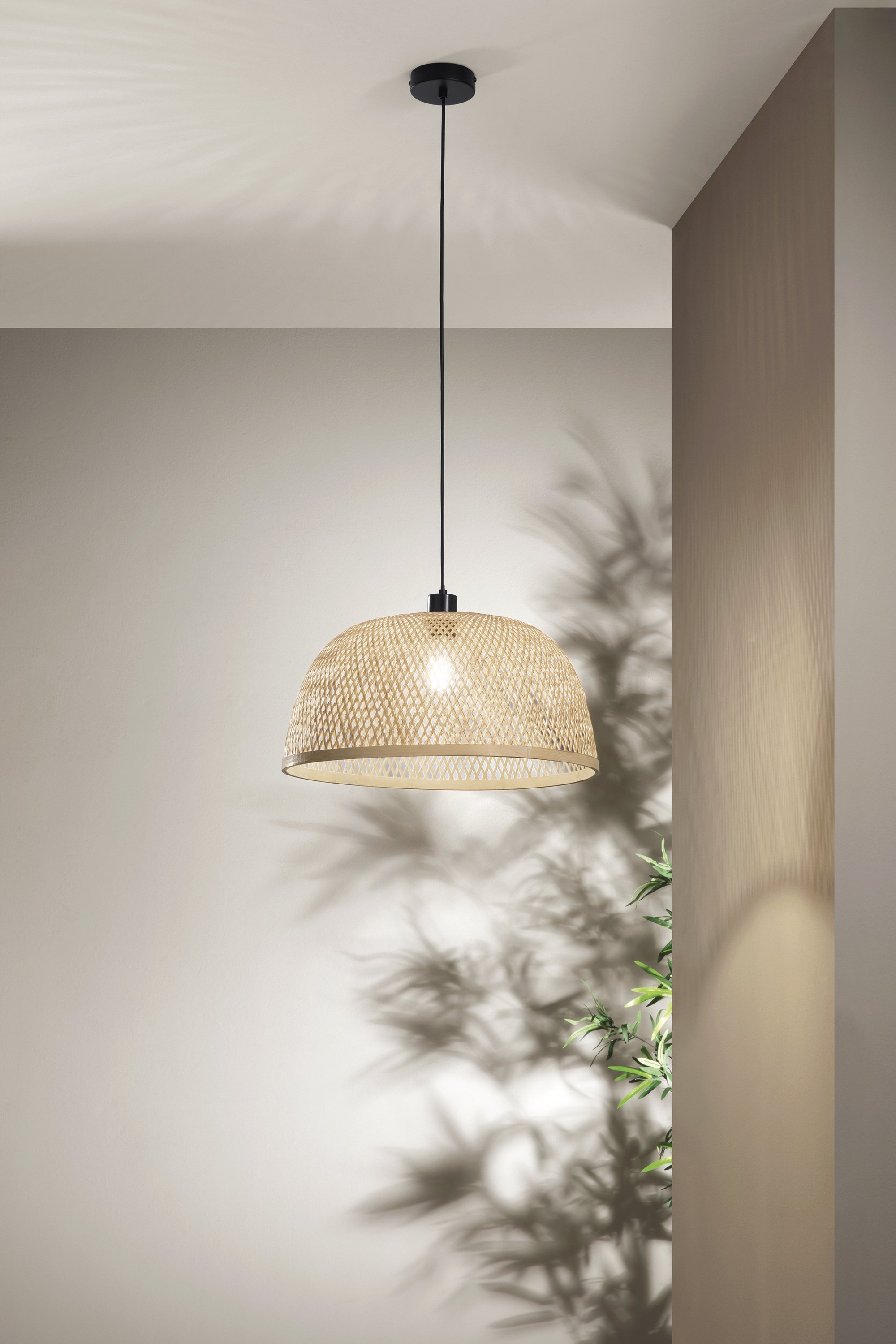 Závěsné svítidlo Bamboo kov + bambus, 1xE27, 40 W; lampa pr. 48 x H 22 cm, konstrukce pr. 48 x 200 cm - FANEUROPE