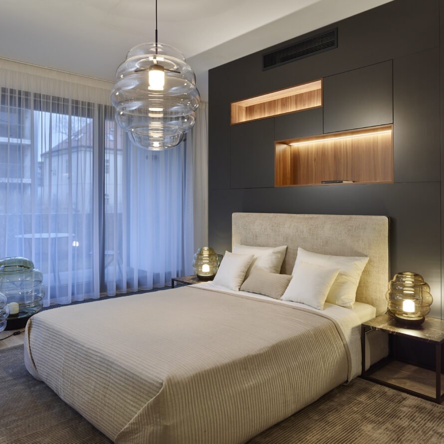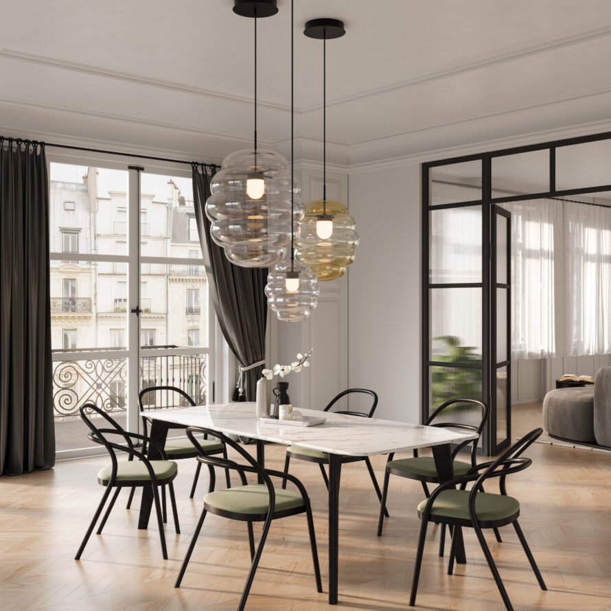 Závěsné svítidlo Blimp střední 45cm kabel 2,5m lakovaná ocel černá + foukané sklo čiré - BOMMA
