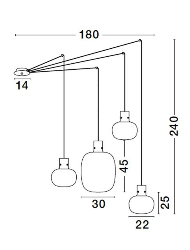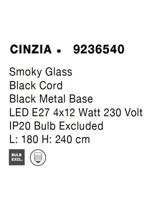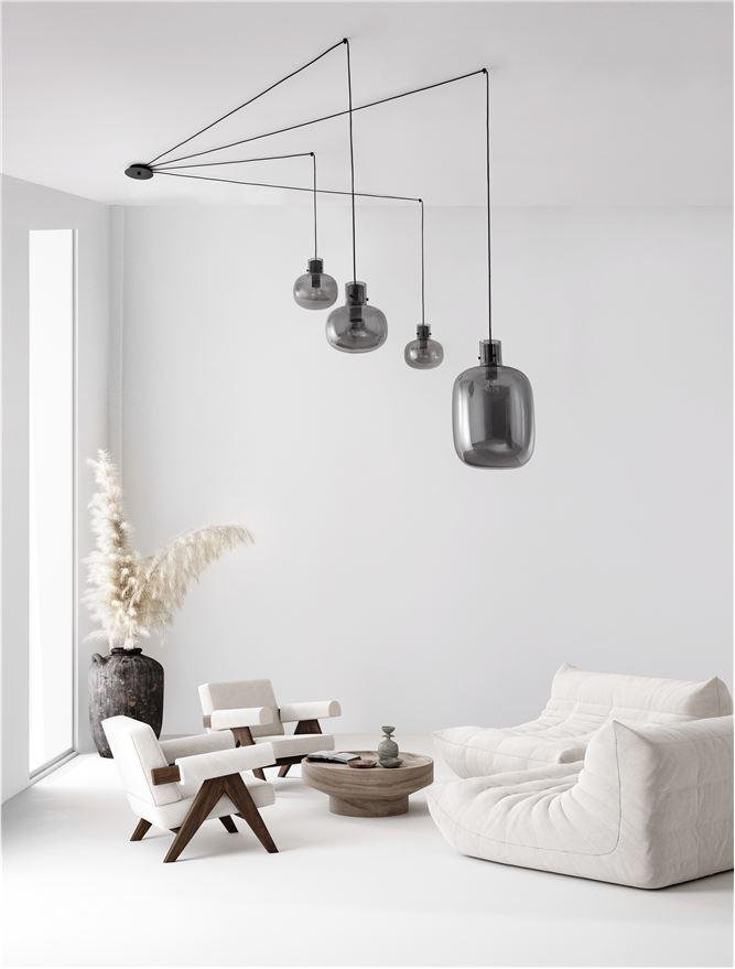 Závěsné svítidlo CINZIA kouřové sklo černý kabel černá kovová základna E27 4x12W 230V IP20 bez žárovky - NOVA LUCE