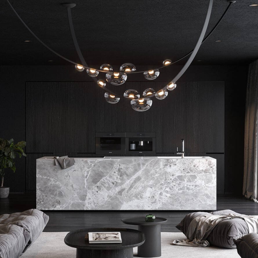 Závěsné svítidlo Dew Drops vegan black leather - BOMMA