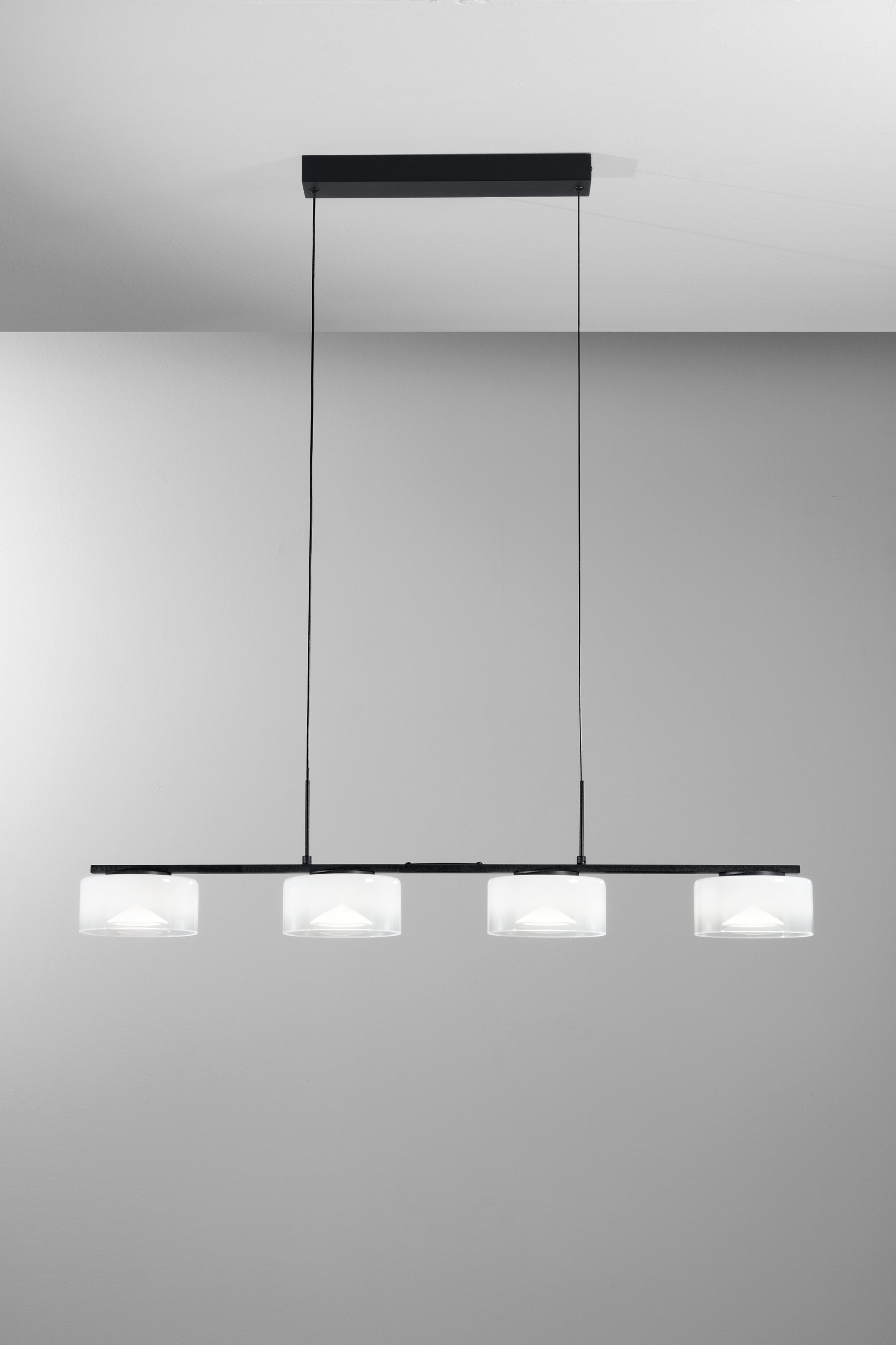 Závěsné svítidlo Emily bílá, 4 závěsy, sklo + kov, 30 W, CCT 2700/3200/4000 K, 92 x 12 x 150 cm - FANEUROPE