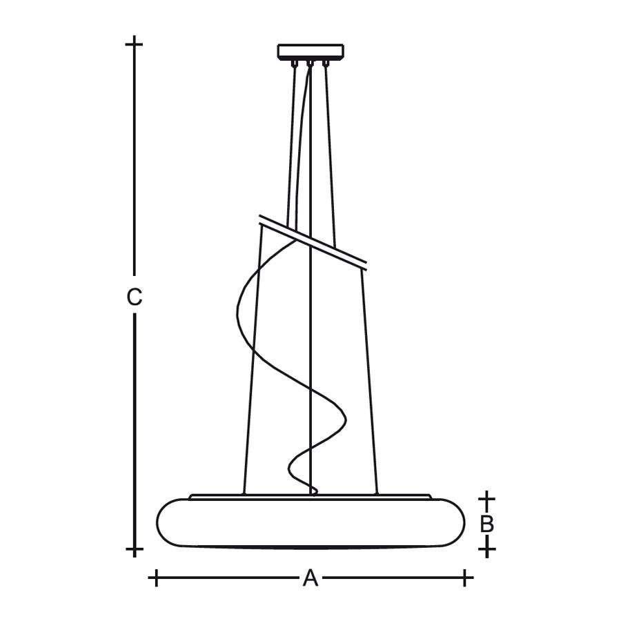 Typ: závěsné svítidloStínítko: polyethylén opál PEKovové části: RAL 9006 strukturaZávěs: lankovýRozměry: A: 500 mm, B: 90 mm, C: 2000 mm Více