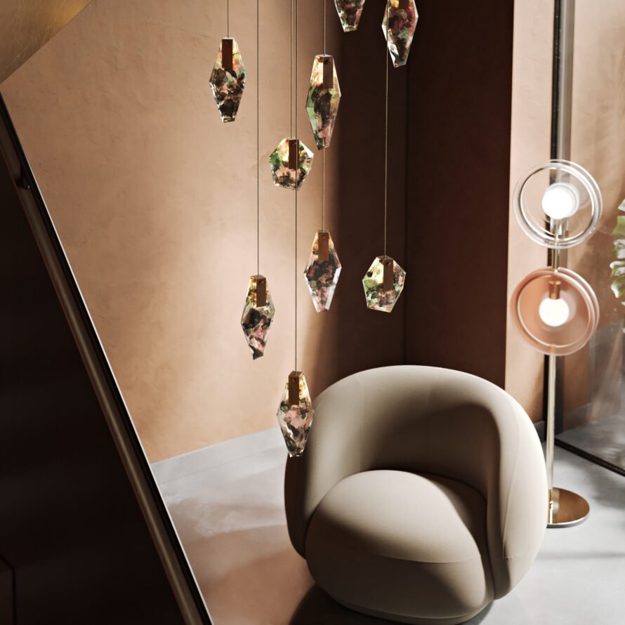 Závěsné svítidlo FRAGMENTS short flamingo mint / zlatá bez rozety - BOMMA