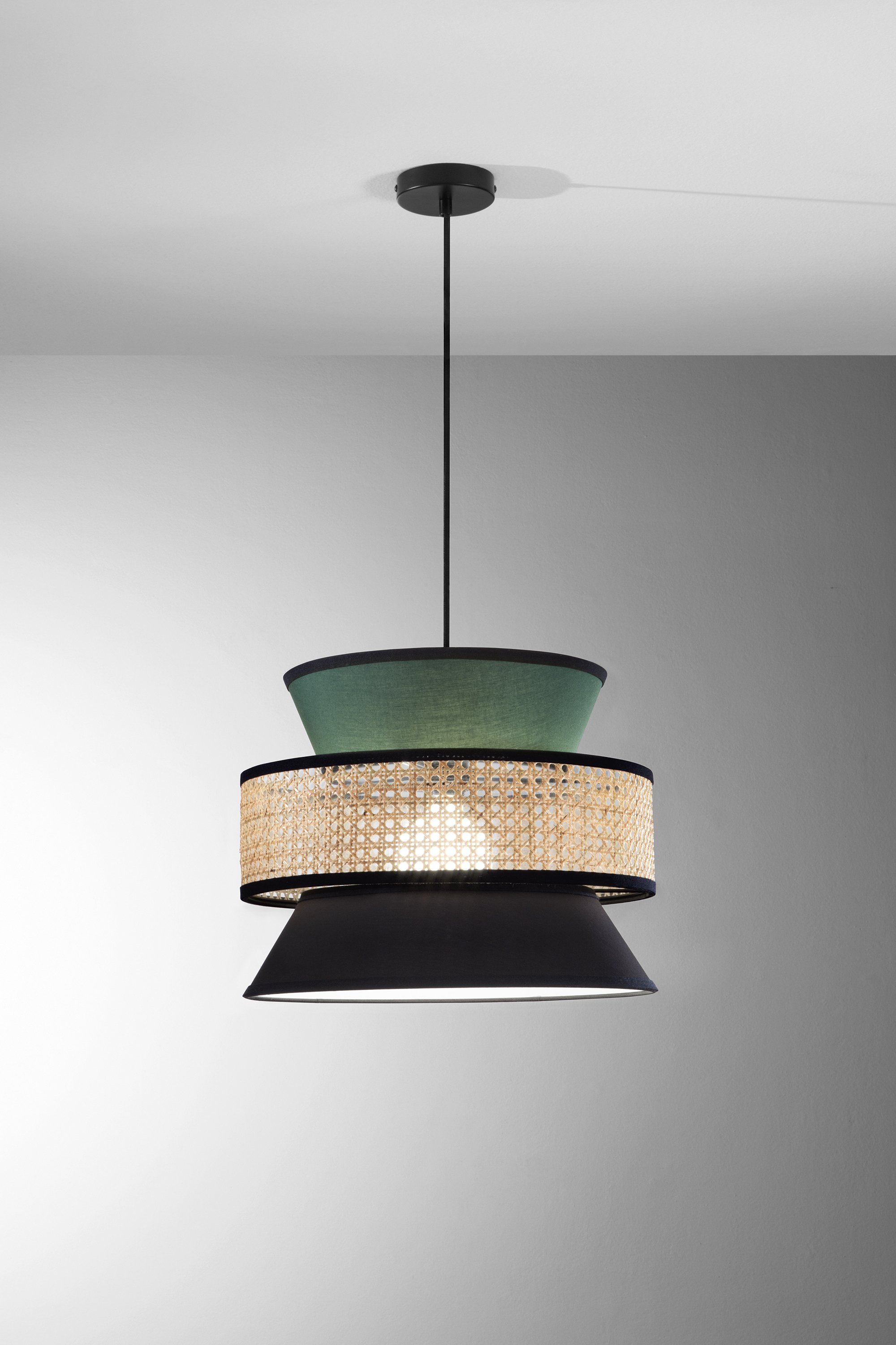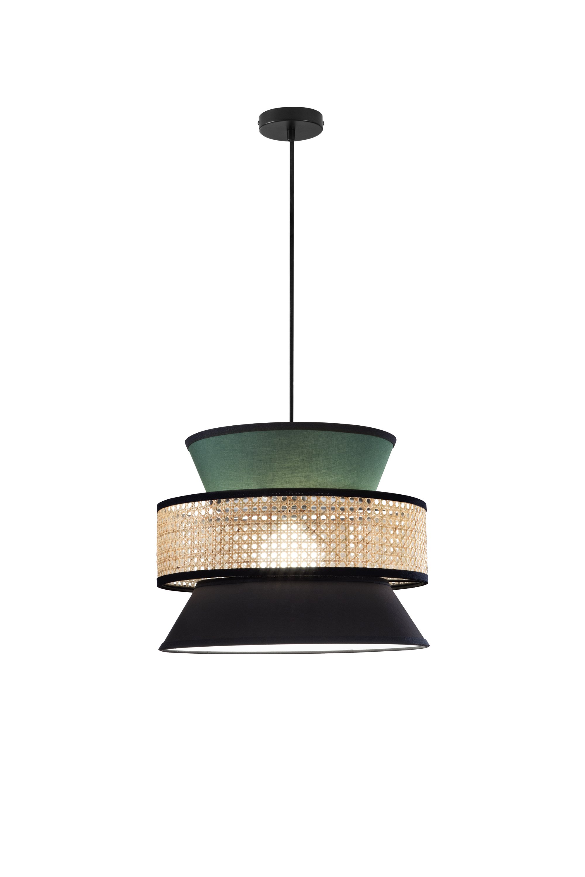 Závěsné svítidlo Gazebo (40 x 200 cm) zelené a černé provedení s přírodním ratanem, patice E27, délka kabelu 210 cm - FANEUROPE