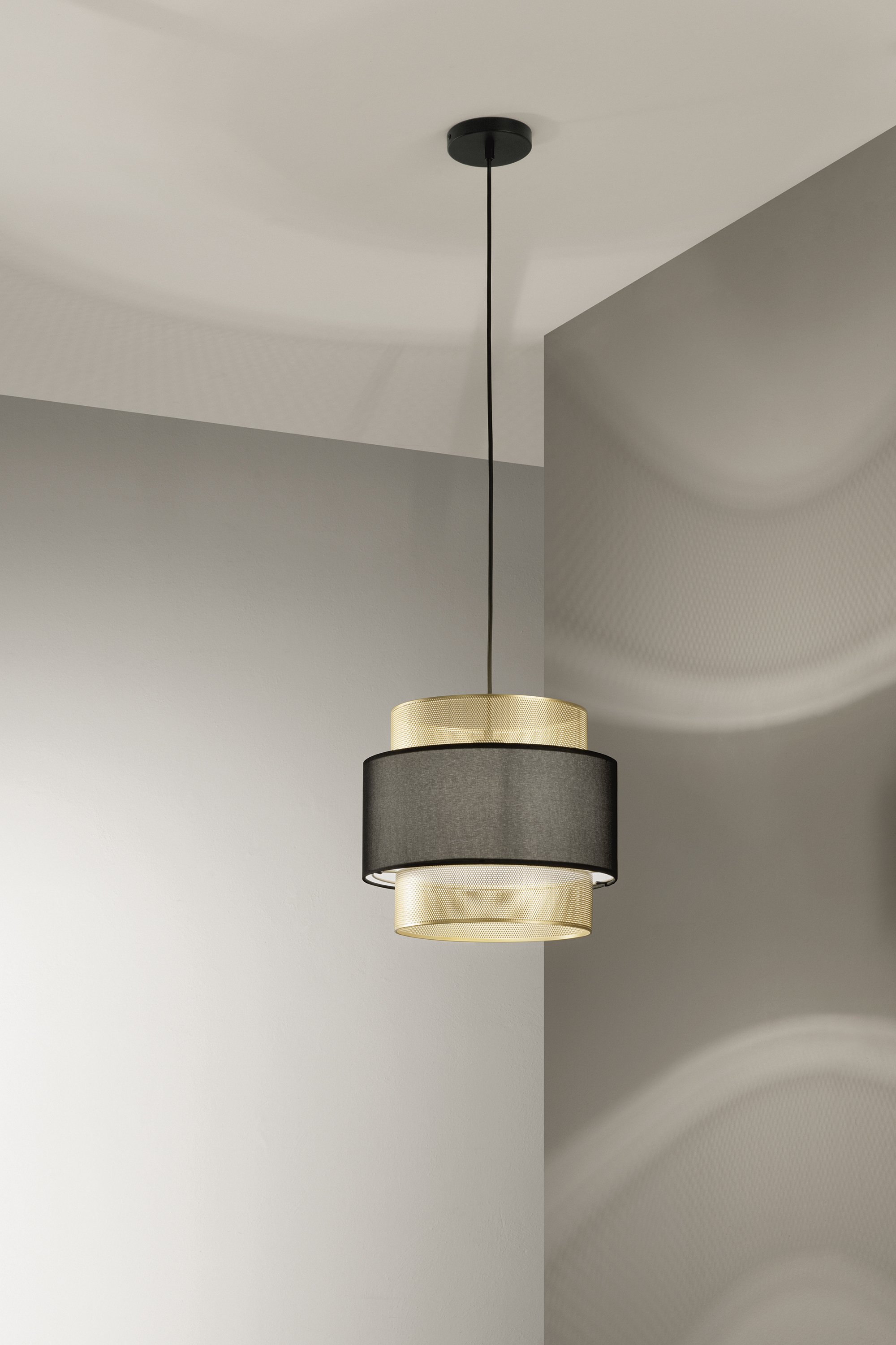 Závěsné svítidlo Lounge zlatá + černá konstrukce, 1 x E27, pr. 35 x 200 cm - FANEUROPE