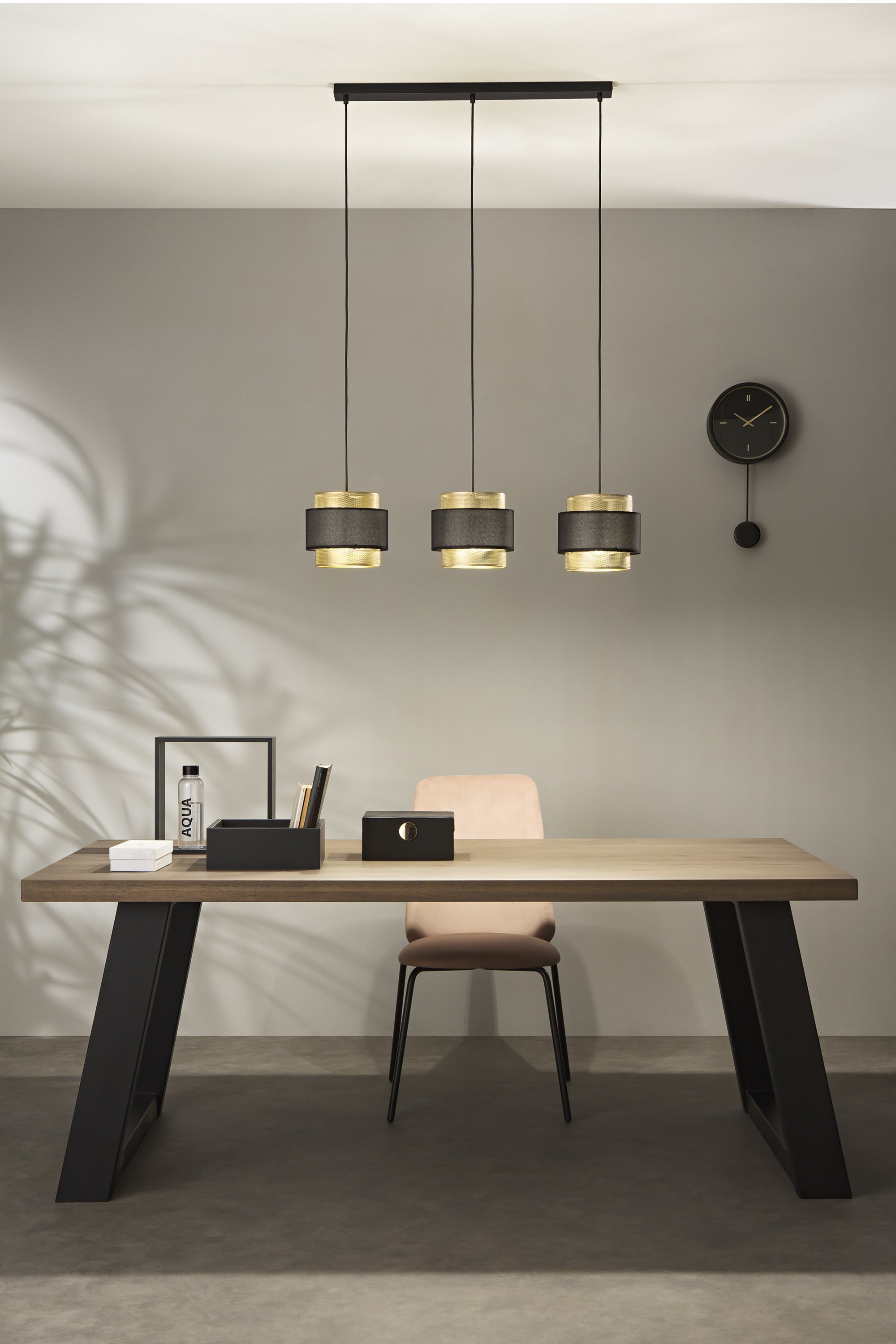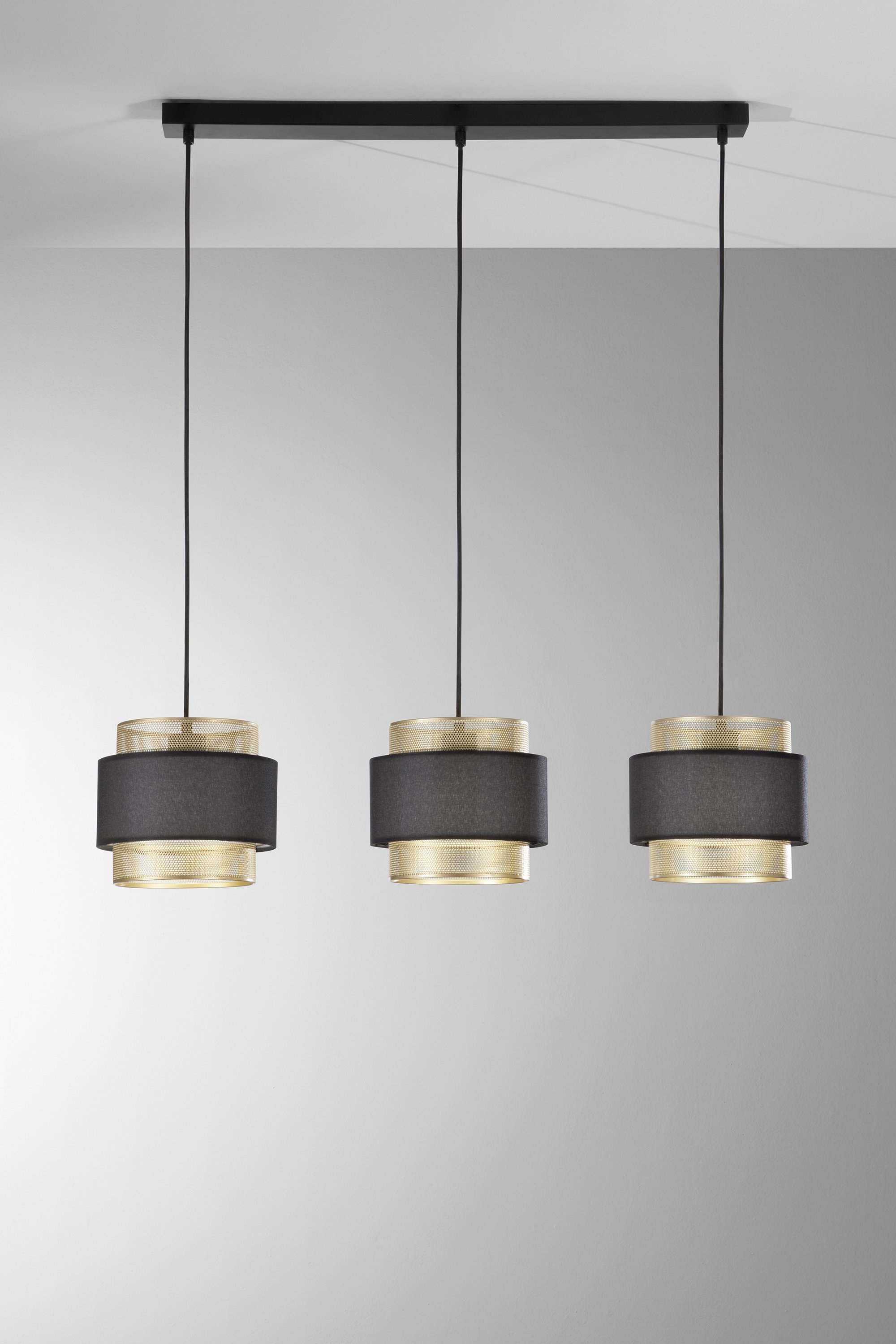 Závěsné svítidlo Lounge zlatá + černá konstrukce, 3 x E27, 85 x 200 cm - FANEUROPE