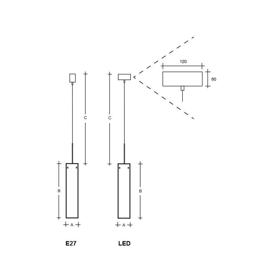 Rozměry: A: 80 mm, B: 300 mm, C: 1700 mm