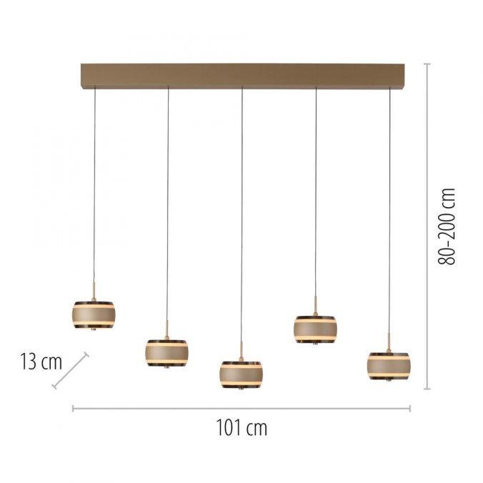 Objevte výjimečnou kombinaci moderního designu a špičkové funkčnosti s pětiramenným závěsným svítidlem PURE Falling Rings od renomované značky PAUL NEUHAUS. Toto svítidlo se stane designovým skvostem každého interiéru, ať už v jídelně, kuchyni či obývacím prostoru. Harmonická barevná kombinace bronzové a tmavého chromu podtrhuje luxusní a nadčasový charakter tohoto osvětlení.