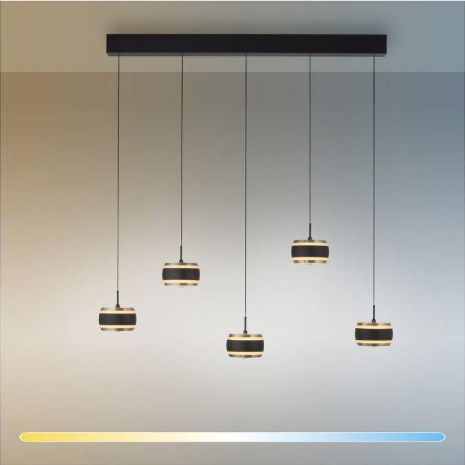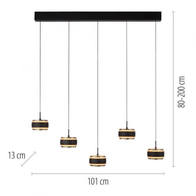 - Exkluzivní design – pět elegantních závěsných „prstenů“ tvoří výraznou dominantu nejen nad jídelním stolem, ale i v obývacím pokoji či kuchyni.