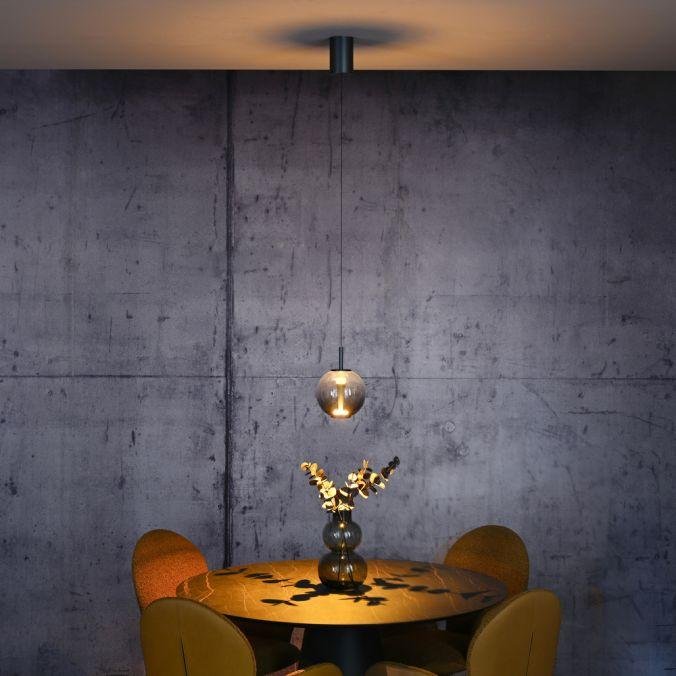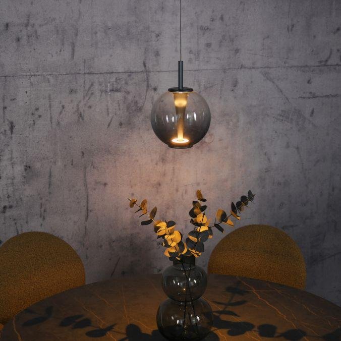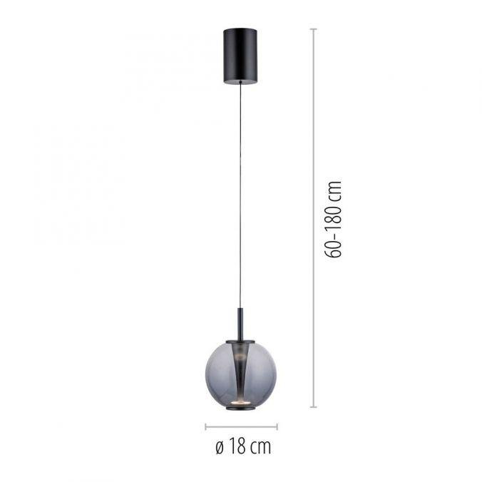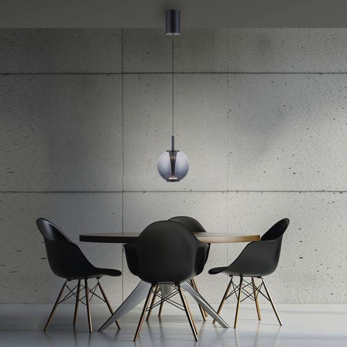 Svítidlo je tvořeno kulovým stínidlem z kvalitního kouřového skla v mysticky šedé barvě, které dodává prostoru decentní eleganci. Minimalistický tvar a čisté linie podtrhují moderní charakter svítidla, zatímco povrchová úprava skla zjemňuje světelný efekt a eliminuje oslnění. Výškově nastavitelný závěs umožňuje přizpůsobení polohy svítidla bez nutnosti použití nářadí.