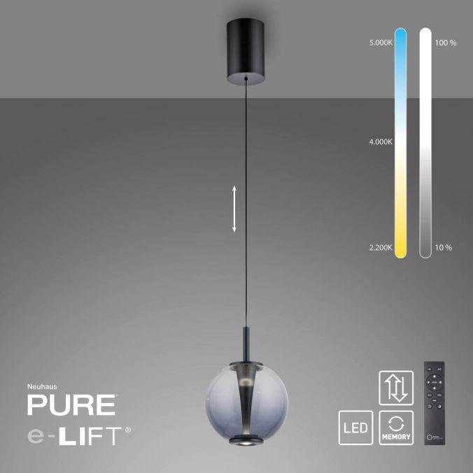 Závěsné svítidlo PURE Infinity mystická šedá, komfortně nastavitelná výška, ovladač, 2200-5000K - PAUL NEUHAUS