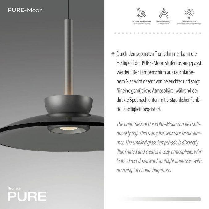 Závěsné svítidlo PURE Moon šedá nastavitelná výška, 2700K - PAUL NEUHAUS