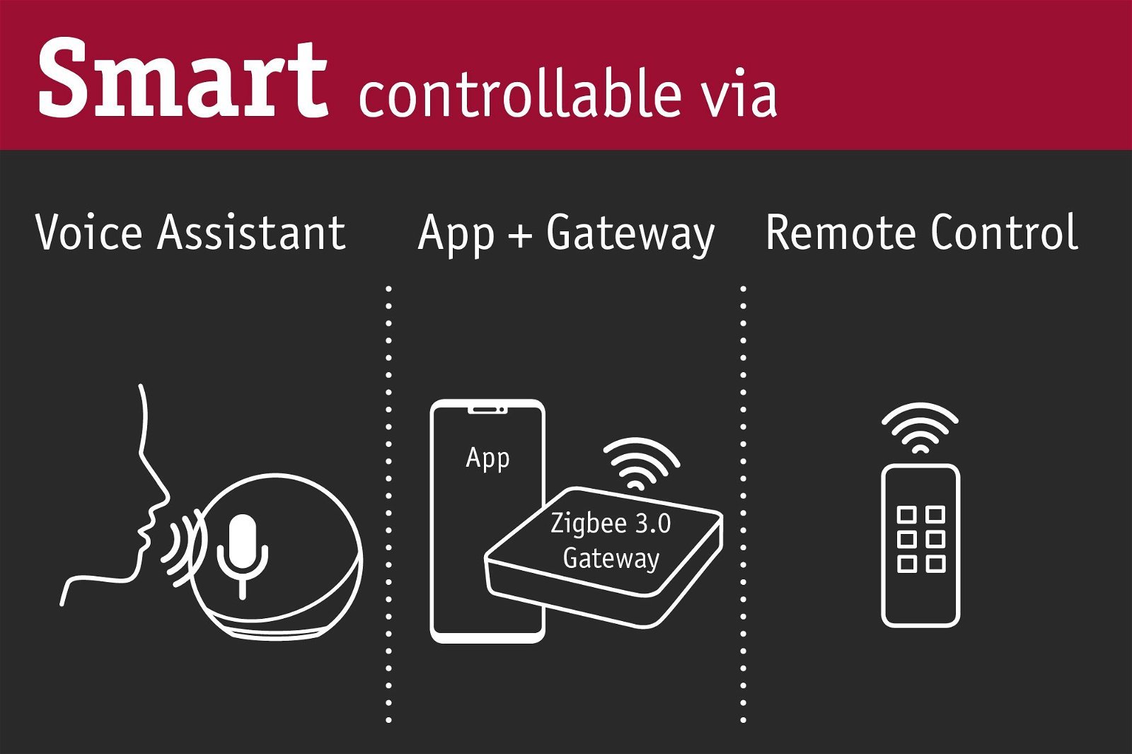 Se Zigbee bránou smik a svítidly od Paulmann lze dům a zahradu rozzářit chytře. Nová Paulmann Gateway je šikovná, kompaktní a se svým elegantním a jednoduchým designem hladce zapadne do všech obytných prostor. Světlo lze ovládat podle vlastních přání a potřeb pomocí mobilní aplikace, hlasu nebo vypínače. Ať už vestavěná světla, kolejnicové systémy nebo jiná svítidla, lze vytvořit scény pro každou náladu a činnost. Díky různým odstínům bílé a milionům barev v různých jasech lze vytvořit individuální zážitek z chytrého osvětlení.
