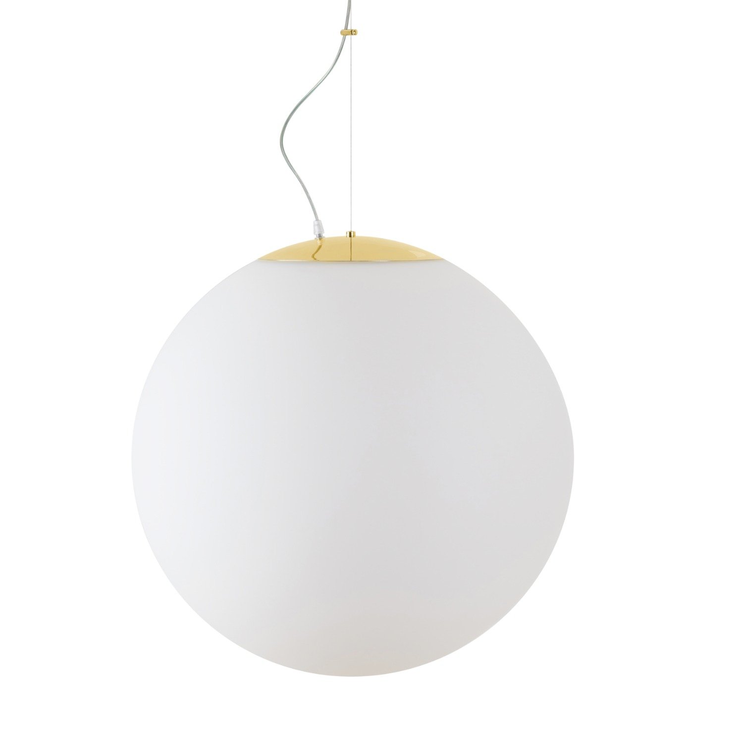Mosazné závěsné LED svítidlo ON/OFF a skleněné stínidlo TRIPLEX OPAL