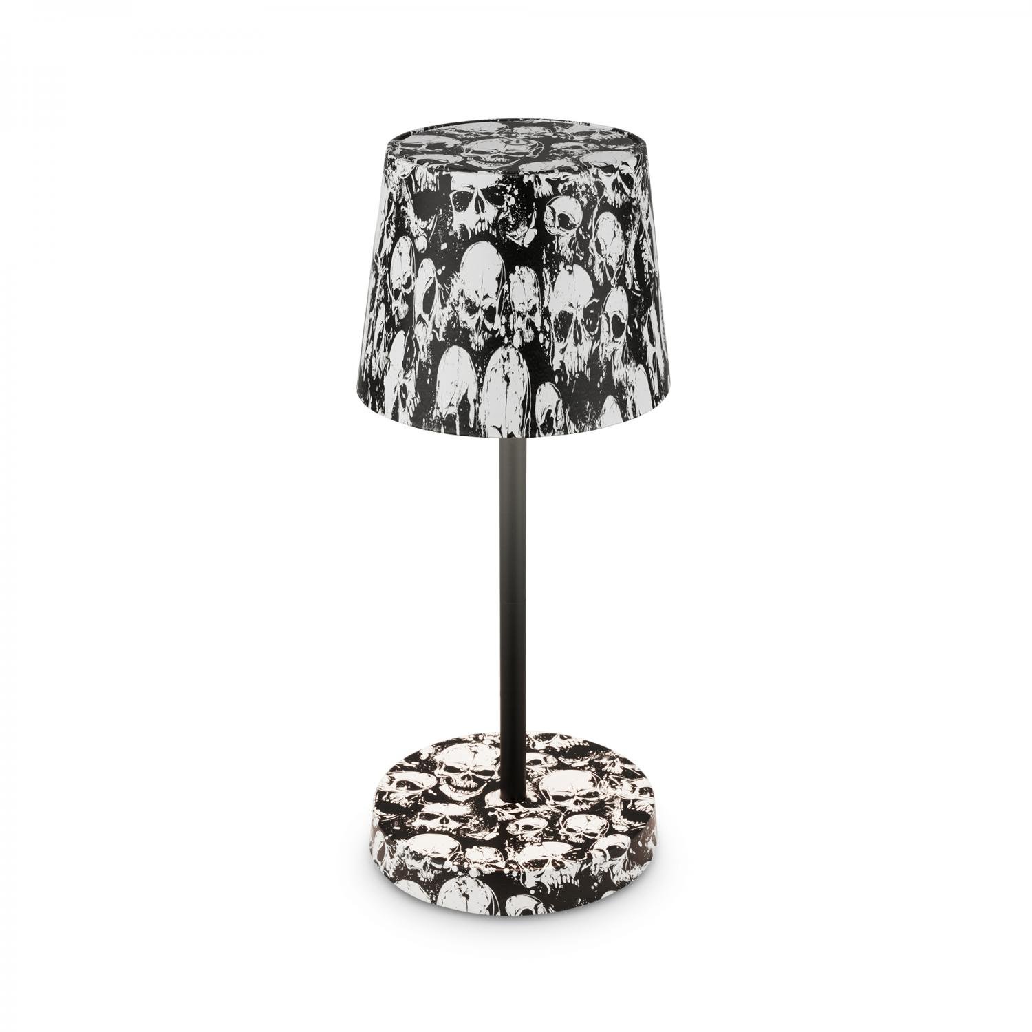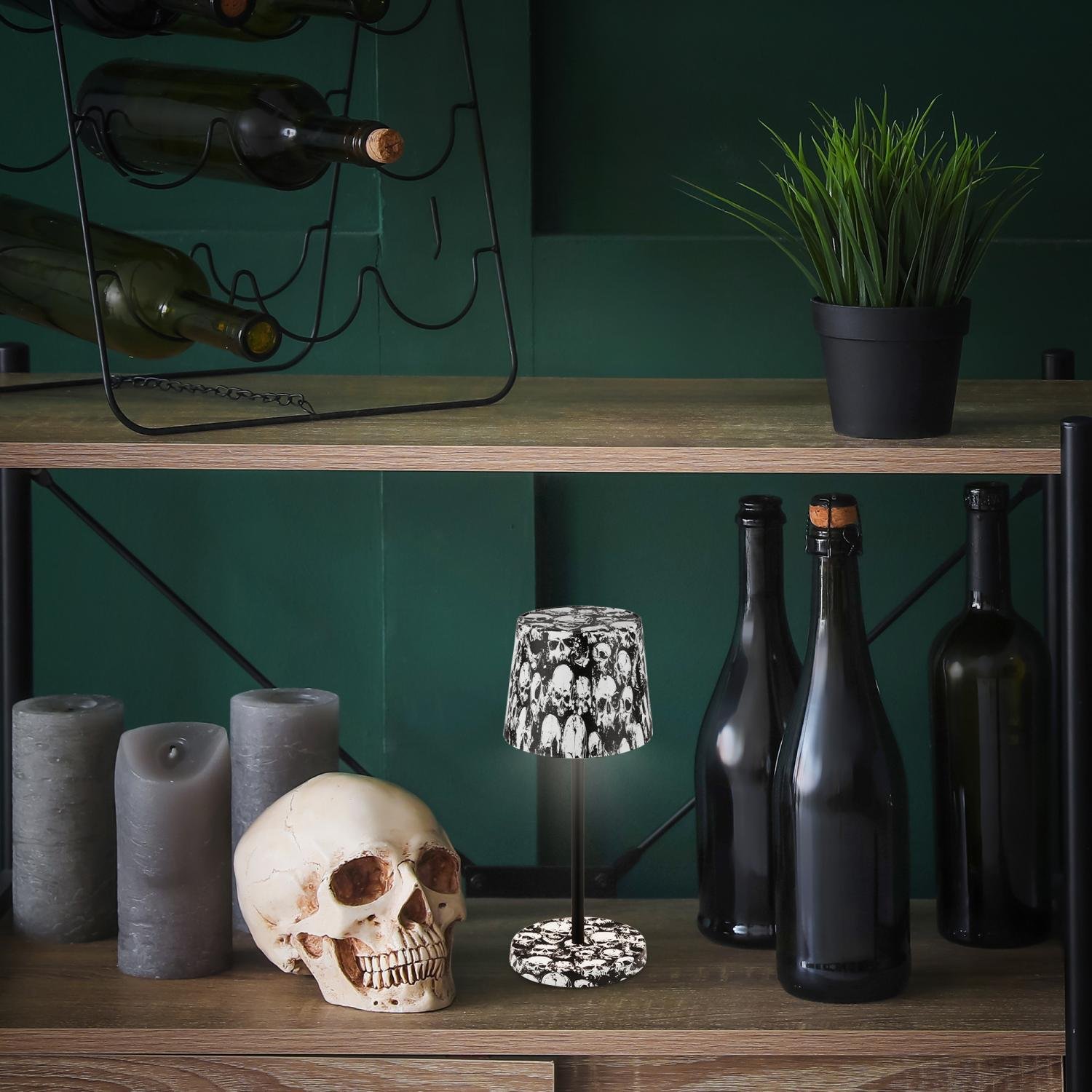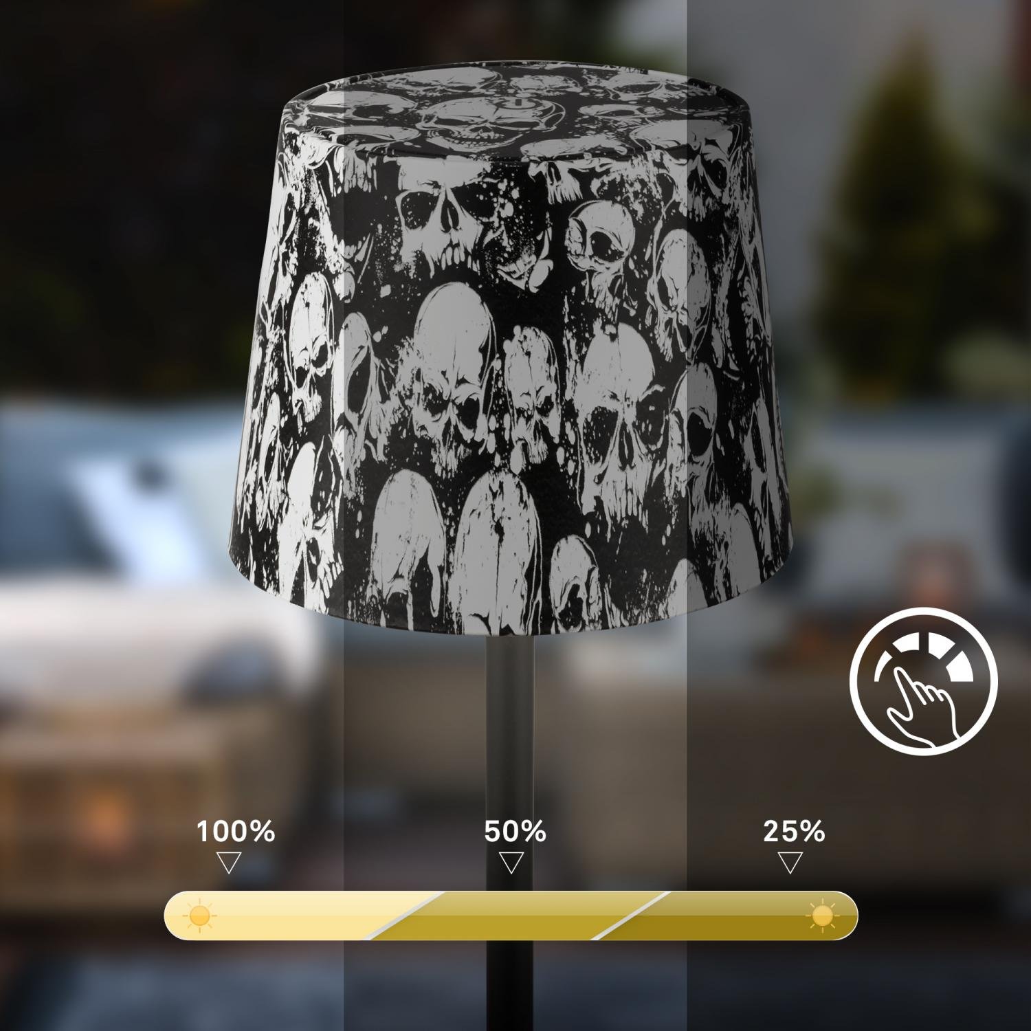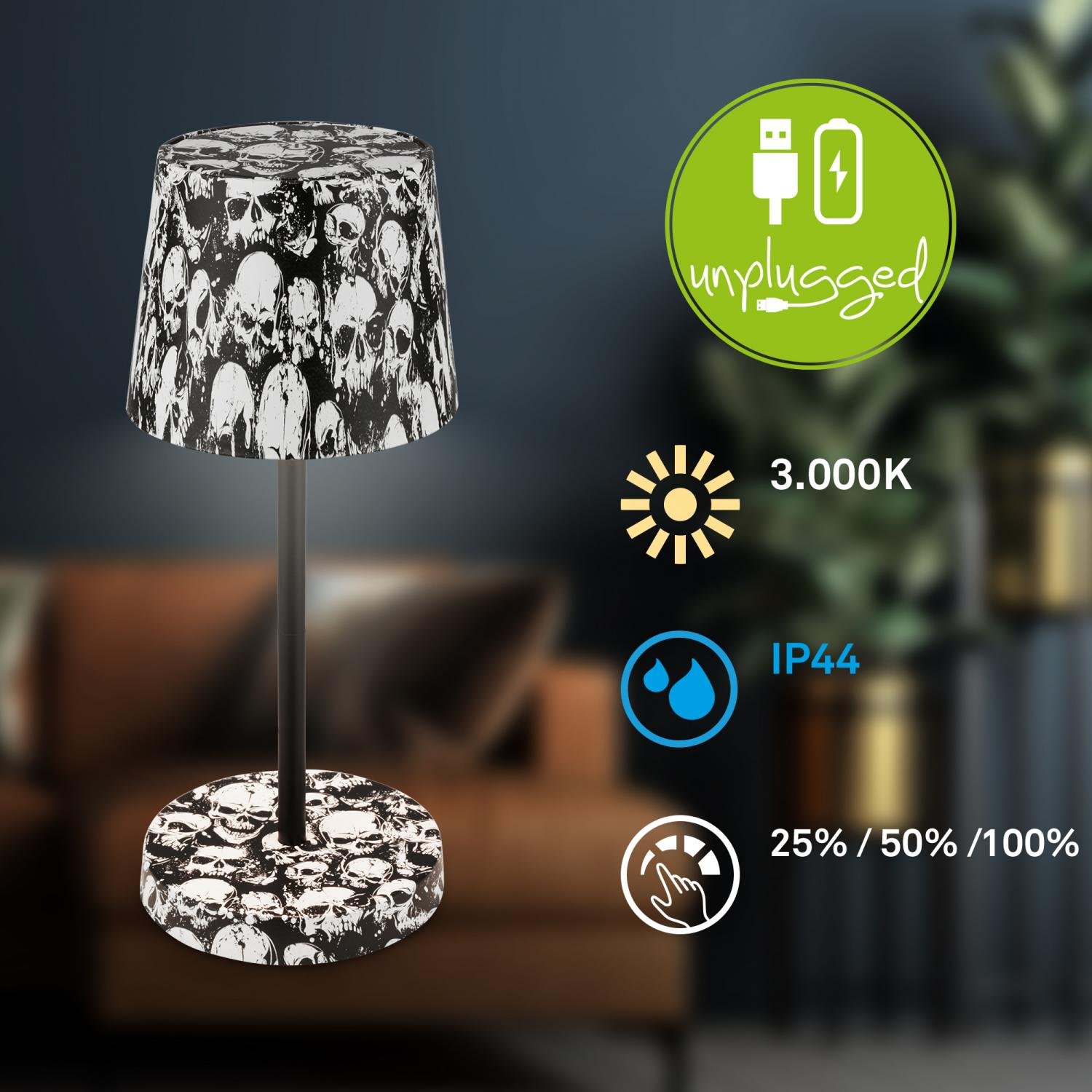 BRILONER Boano LED stolní lampička bezdrátová IP44, stmívatelná, dotykový vypínač, motiv lebky