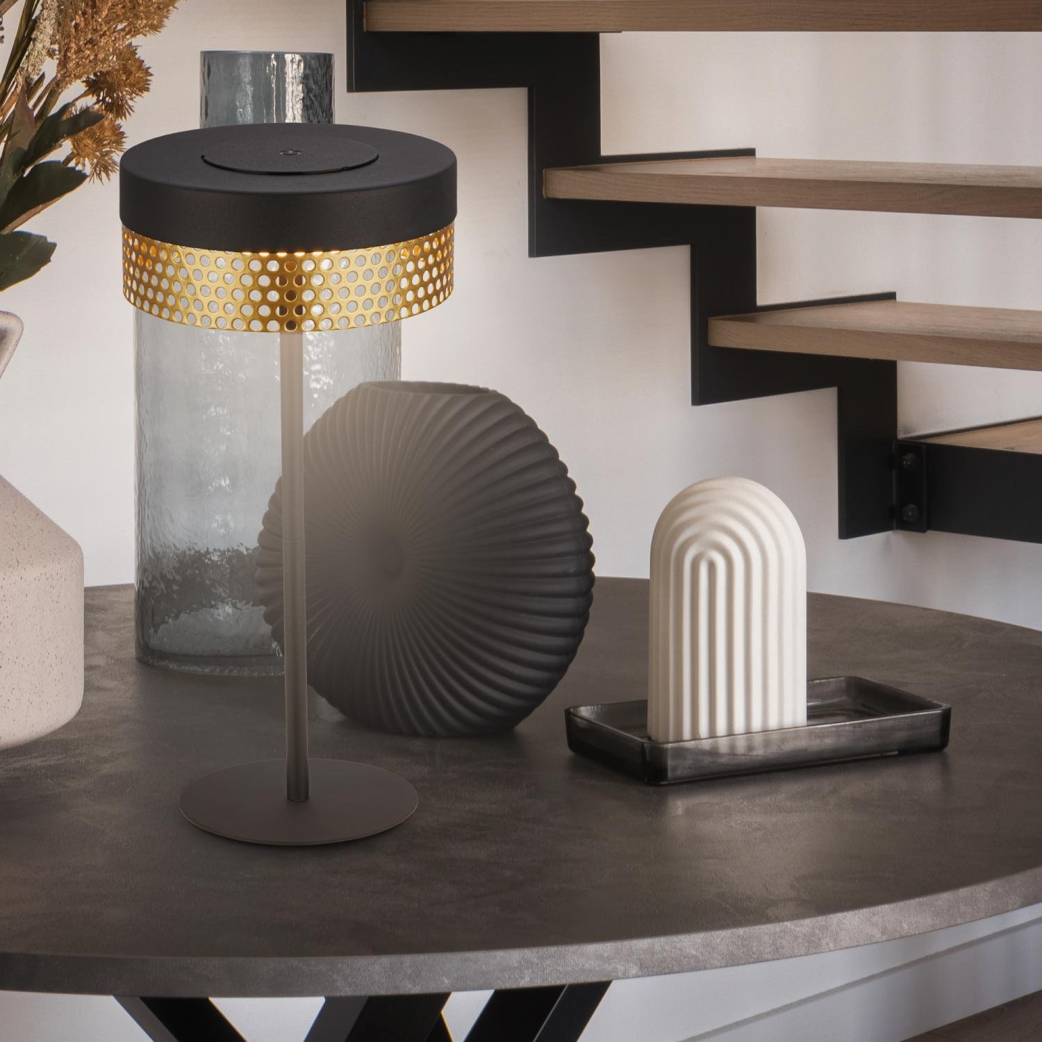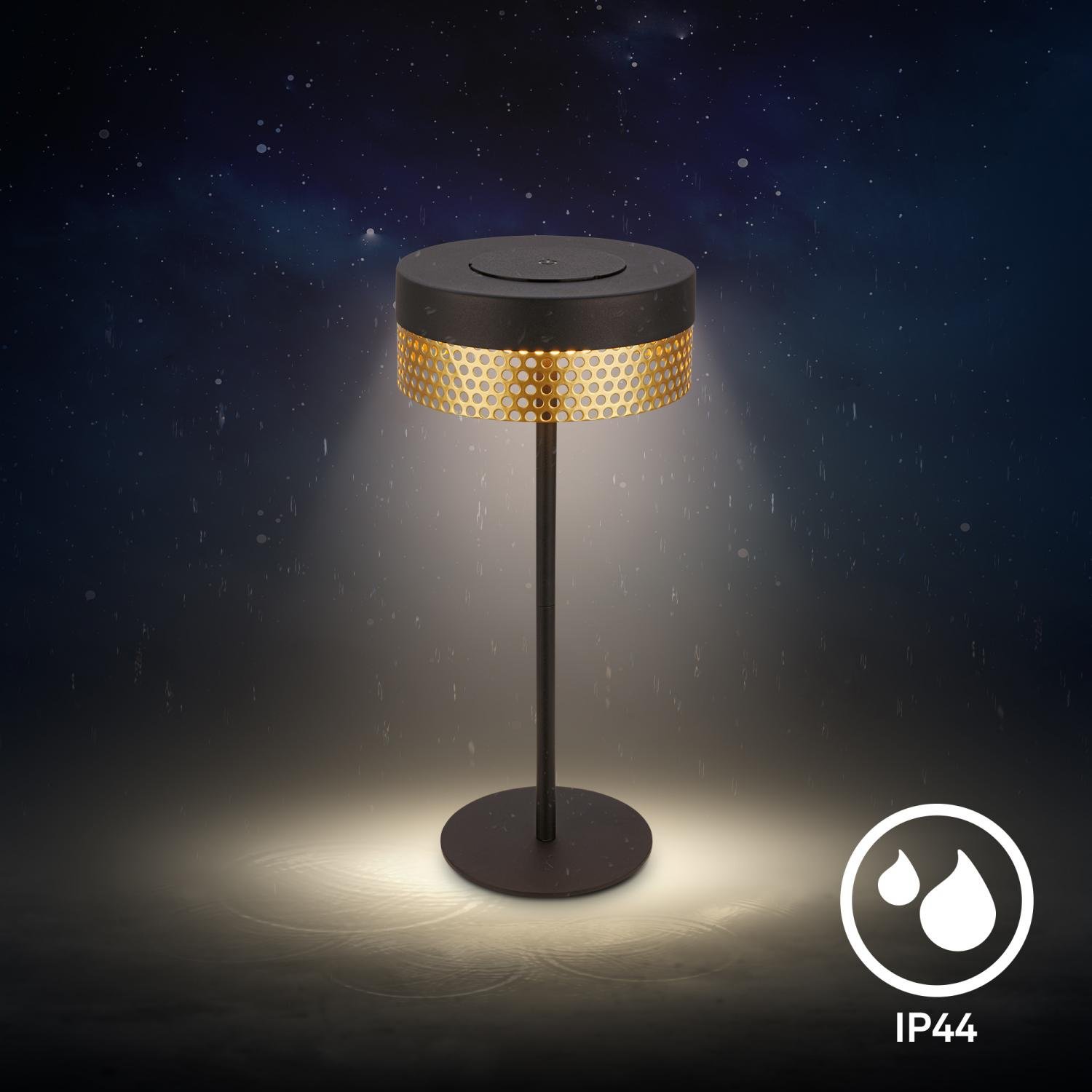 BRILONER Booha stolní lampa - 2,5W, 300lm, bezdrátová, IP44, LED, stmívatelná, teplá bílá, černá/zlatá 7576015