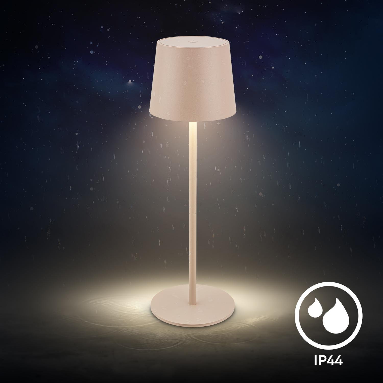 BRILONER Bota je stylová stolní lampa, která vyniká minimalistickým vzhledem a praktičností. Je vybavena integrovaným LED modulem o příkonu 1,8 W a světelném toku 120 lm, což zajišťuje příjemně teplé bílé světlo (3000 K) pro navození útulné atmosféry na terase, balkonu nebo v obývacím pokoji. Béžové provedení harmonicky zapadne do různých interiérových i exteriérových stylů.
