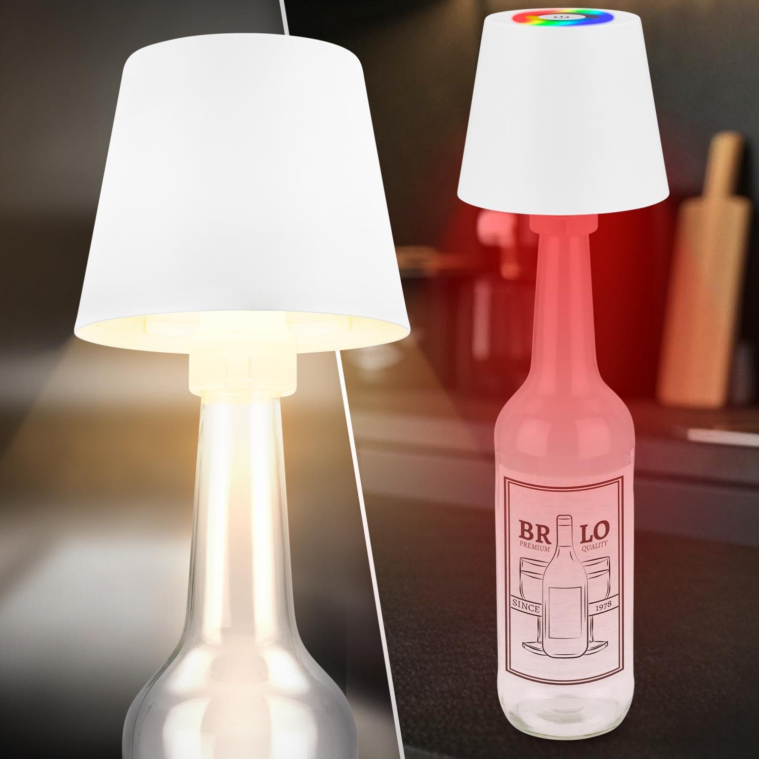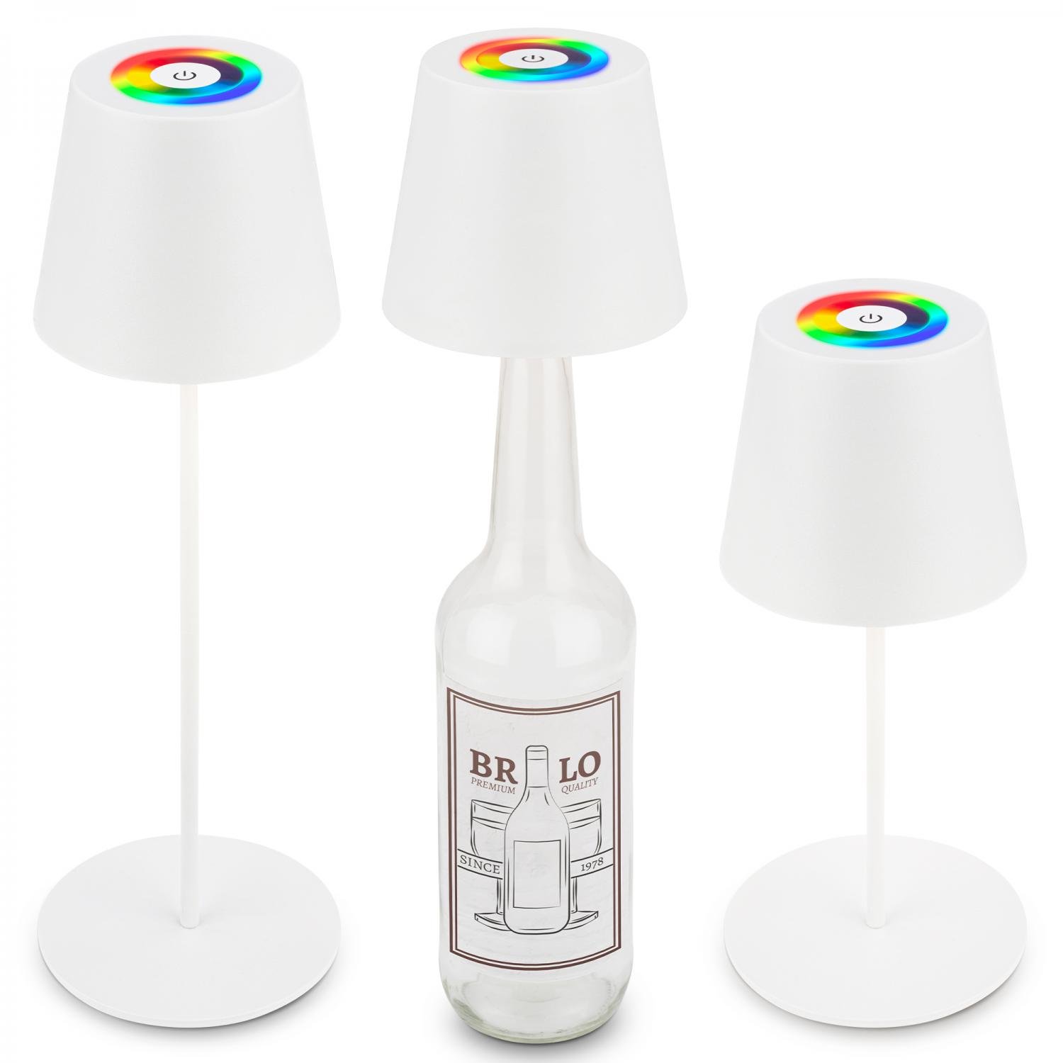 BRILONER Calida 3 v 1 RGBW LED stolní lampička bezdrátová IP44, stmívatelná, dotykový vypínač, bílá