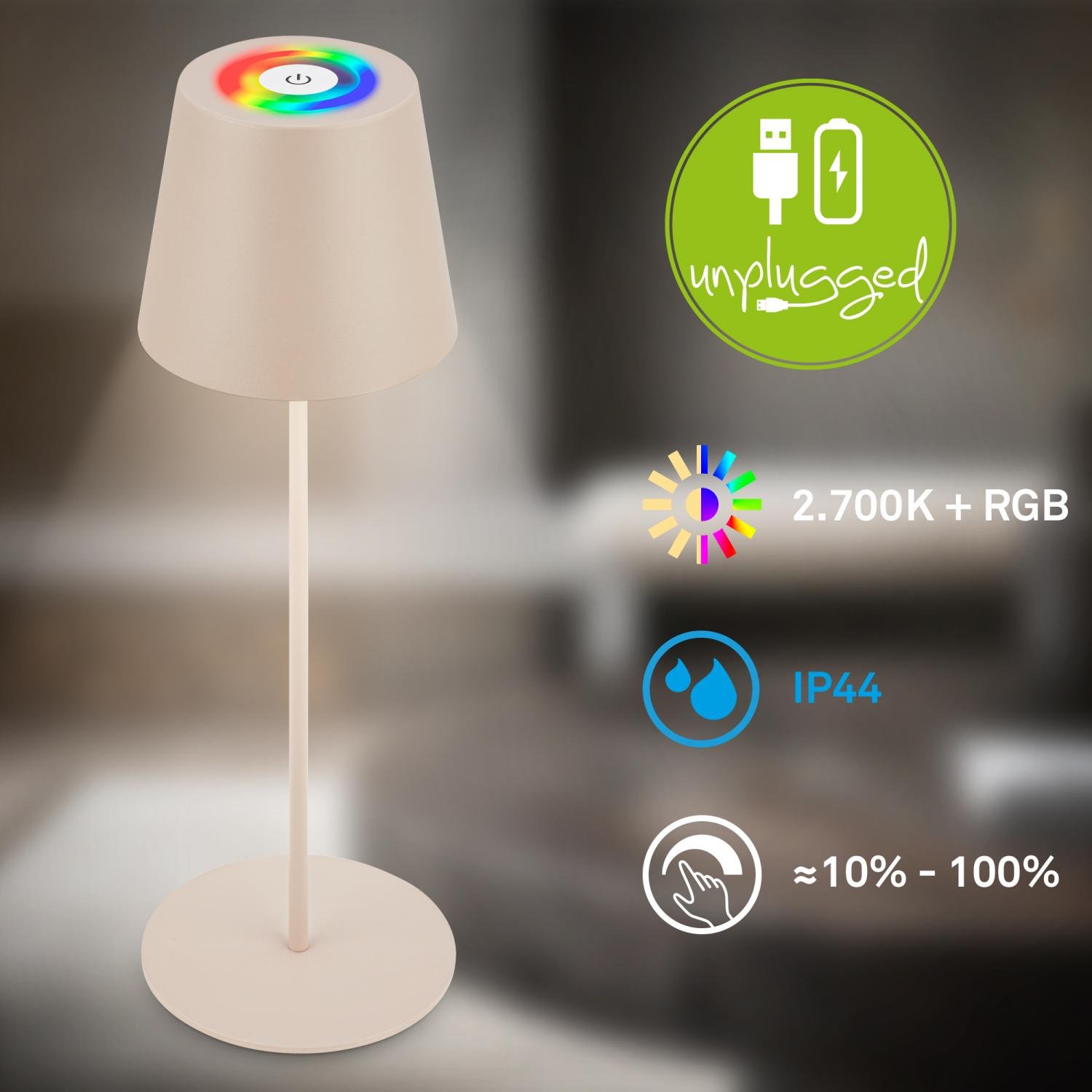 BRILONER Calida 3 v 1 RGBW stolní lampička bezdrátová IP44, stmívatelné, dotykový vypínač, béžová 7510011