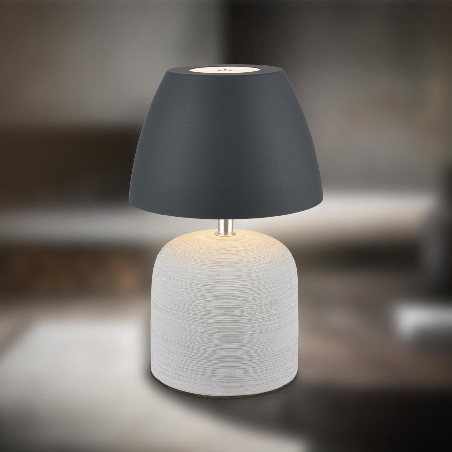 Stolní lampa BRILONER Cera v elegantní kombinaci šedé a antracitové je stylovým a funkčním doplňkem pro váš domov, terasu i balkon. Nadčasový keramický podstavec a matné stínidlo vytváří harmonický celek, který zapadne do moderního i minimalistického interiéru.