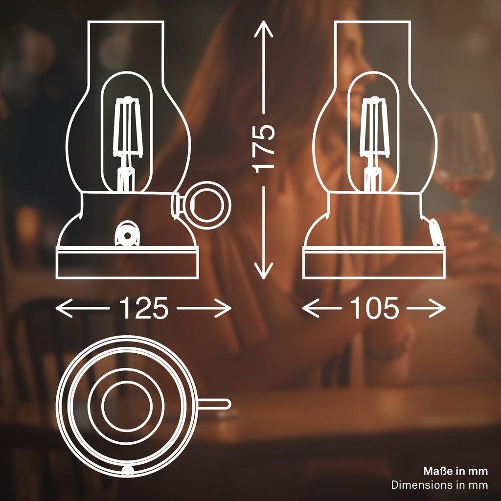 BRILONER Kanea je stylová stolní LED lampa inspirovaná tradičními olejovými lucernami, která kombinuje vintage vzhled s nejmodernějšími světelnými technologiemi. S kompaktními rozměry (Ø10,5 × 17,5 cm) a elegantním antracitovým povrchem je ideální volbou pro interiér i exteriér. Její teplé bílé světlo (2 700 K) vytváří příjemnou atmosféru pro relaxaci i společenské chvíle.
