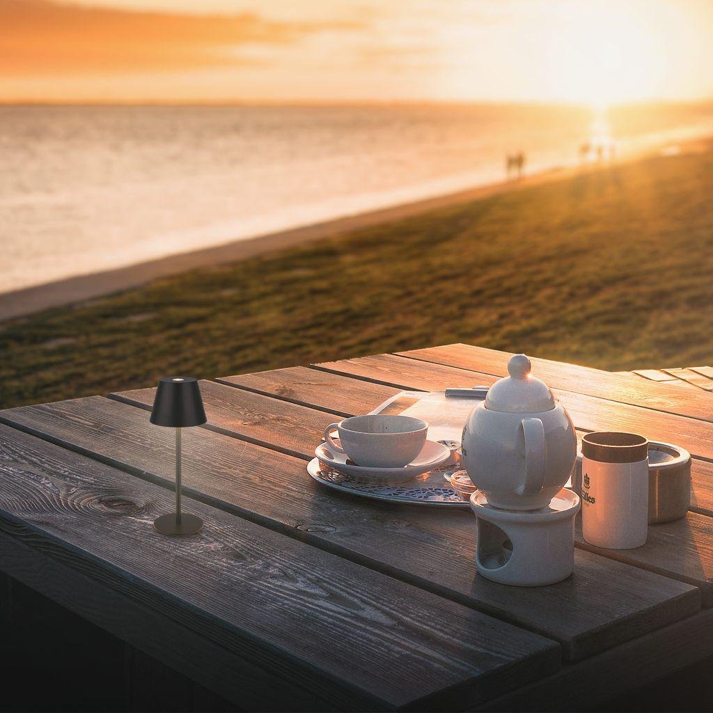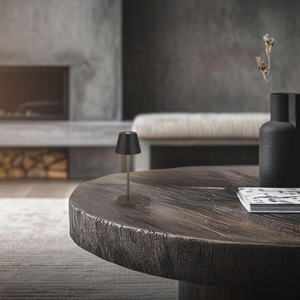 Moderní LED stolní lampička BRILONER Kiki Nano v matné černé barvě zaujme svým minimalistickým zpracováním a kompaktními rozměry (Ø 6 × 14,2 cm). Ideální volba na noční stolek, pracovní plochu, balkón nebo terasu. Díky vysokému krytí IP44 je lampička chráněna proti stříkající vodě, což umožňuje bezpečné použití i v exteriéru.