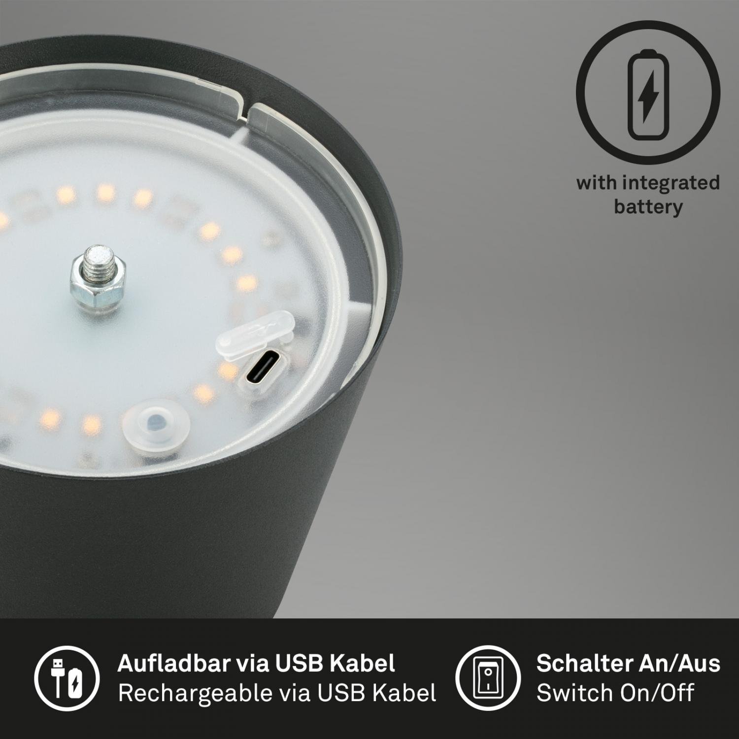 BRILONER Kiki stolní lampička bezdrátová, dotykový vypínač, nastavitelná výška, stmívatelné, nabíjecí, antracit 7508015
