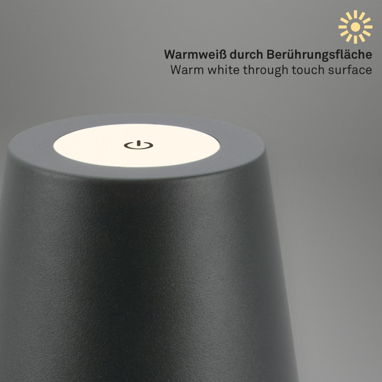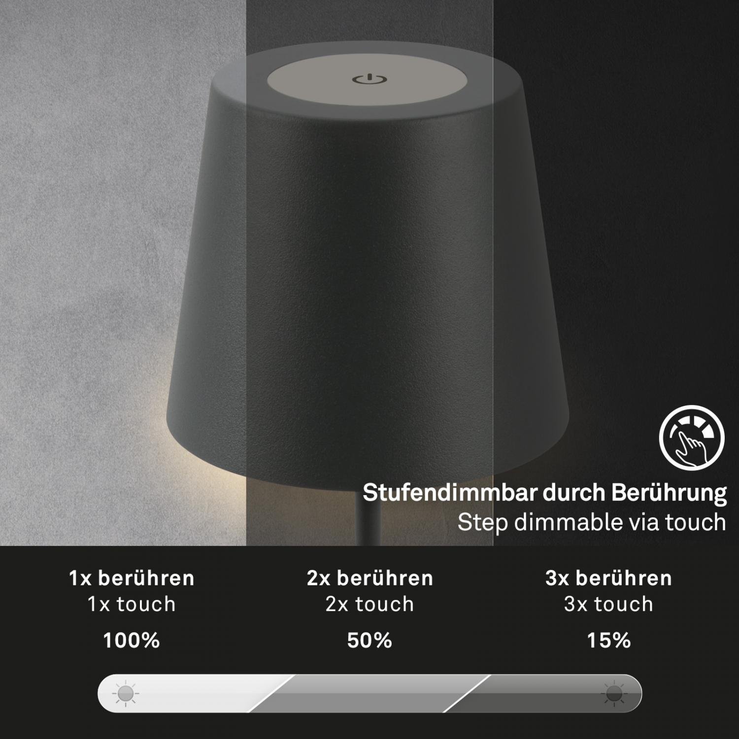 BRILONER Kiki – Bezdrátová stolní LED lampička s dotykovým ovládáním, stmíváním a nastavitelnou výškou (antracit)