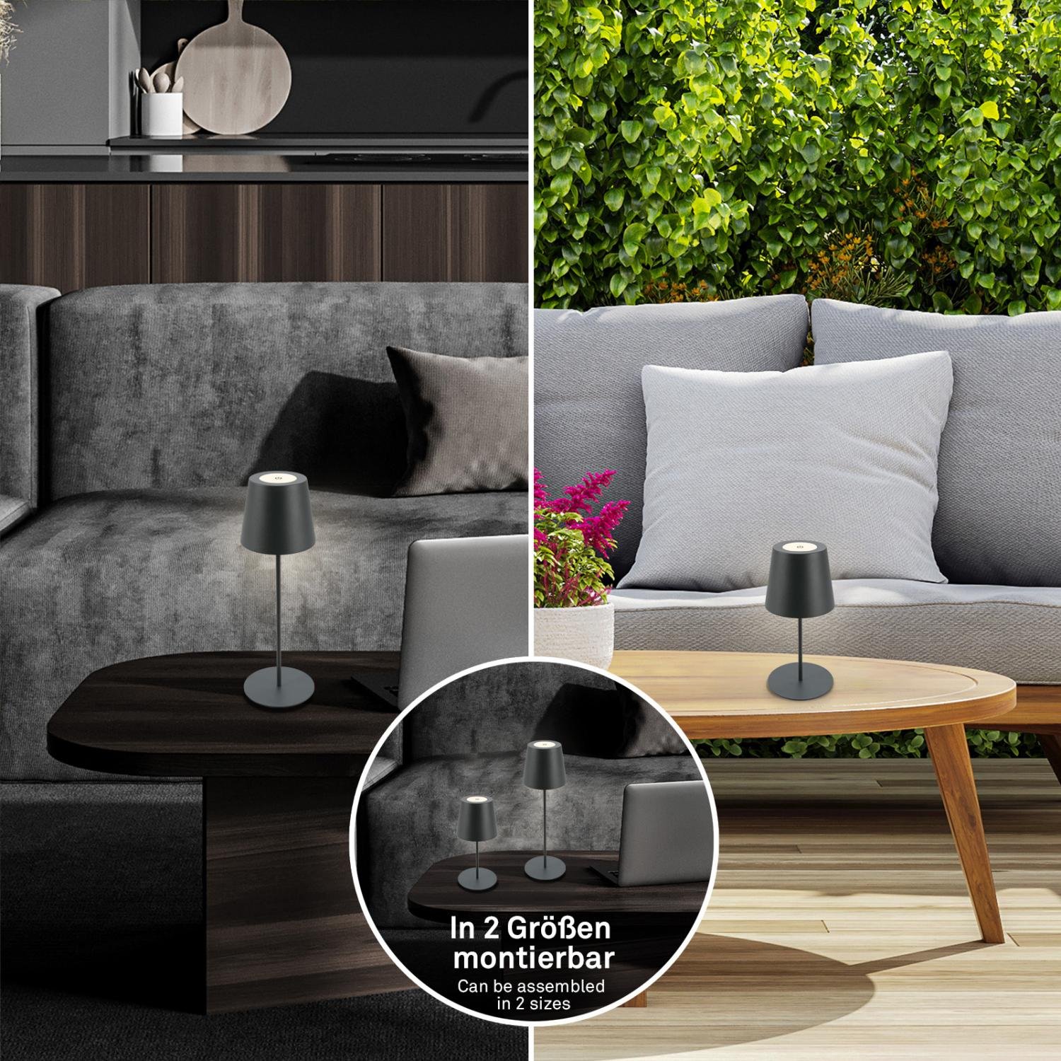 Objevte moderní a flexibilní osvětlení s bezdrátovou LED stolní lampičkou BRILONER Kiki v elegantním antracitovém provedení. Tato lampička je ideální volbou pro domácnosti i terasy – díky krytí IP44 je odolná vůči stříkající vodě, takže ji můžete bezpečně používat jak v interiéru, tak v exteriéru.