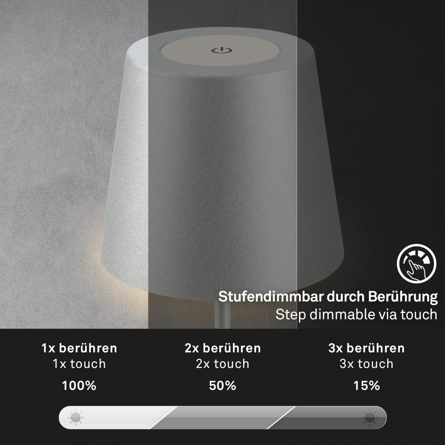 Objevte všestrannost a moderní design s bezdrátovou stolní lampičkou BRILONER Kiki v matném chromu – ideální volba pro každý interiér i venkovní posezení. Minimalistický vzhled v kombinaci s pokročilými funkcemi, jako je dotykové ovládání, stmívání ve třech stupních a možnost nastavení výšky, přináší maximální flexibilitu a pohodlí do vašeho každodenního života.