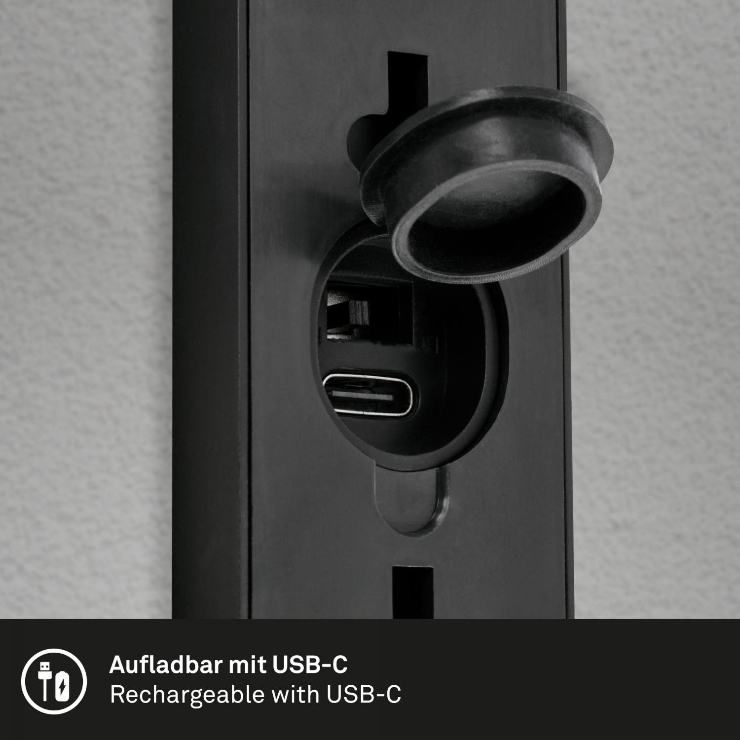 BRILONER Kona představuje inovativní LED venkovní nástěnné svítidlo s vestavěným pohybovým čidlem a soumrakovým senzorem, které zajišťuje komfortní, automatizované osvětlení vašich venkovních prostor bez nutnosti složité instalace. Díky integrovanému dobíjecímu akumulátoru a praktickému USB-C nabíjení je ideální volbou pro místa bez elektrické přípojky, jako jsou vchody, terasy, balkony či zahradní altány.