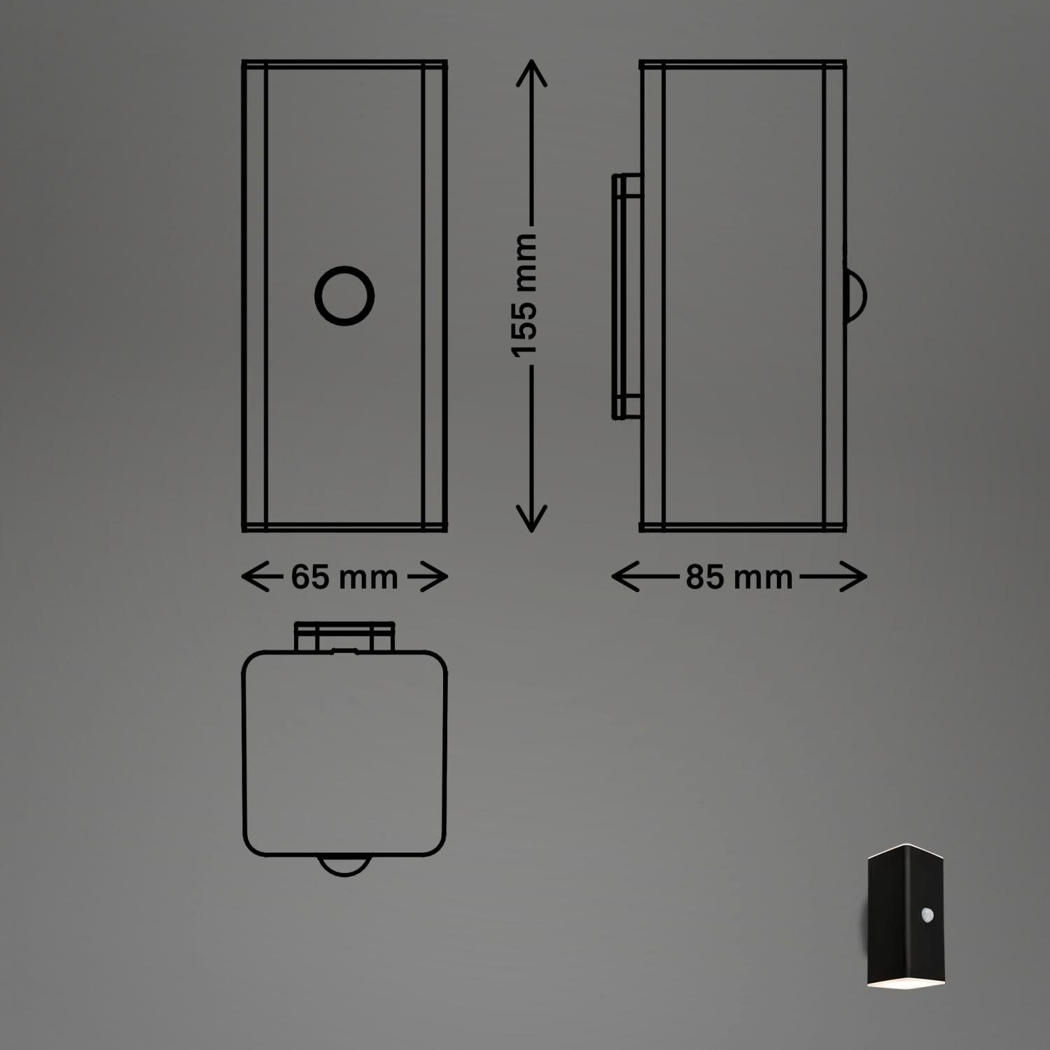 BRILONER Kona LED venkovní nástěnné svítidlo, pohybové čidlo, soumrakový senzor, nabíjecí 3788015