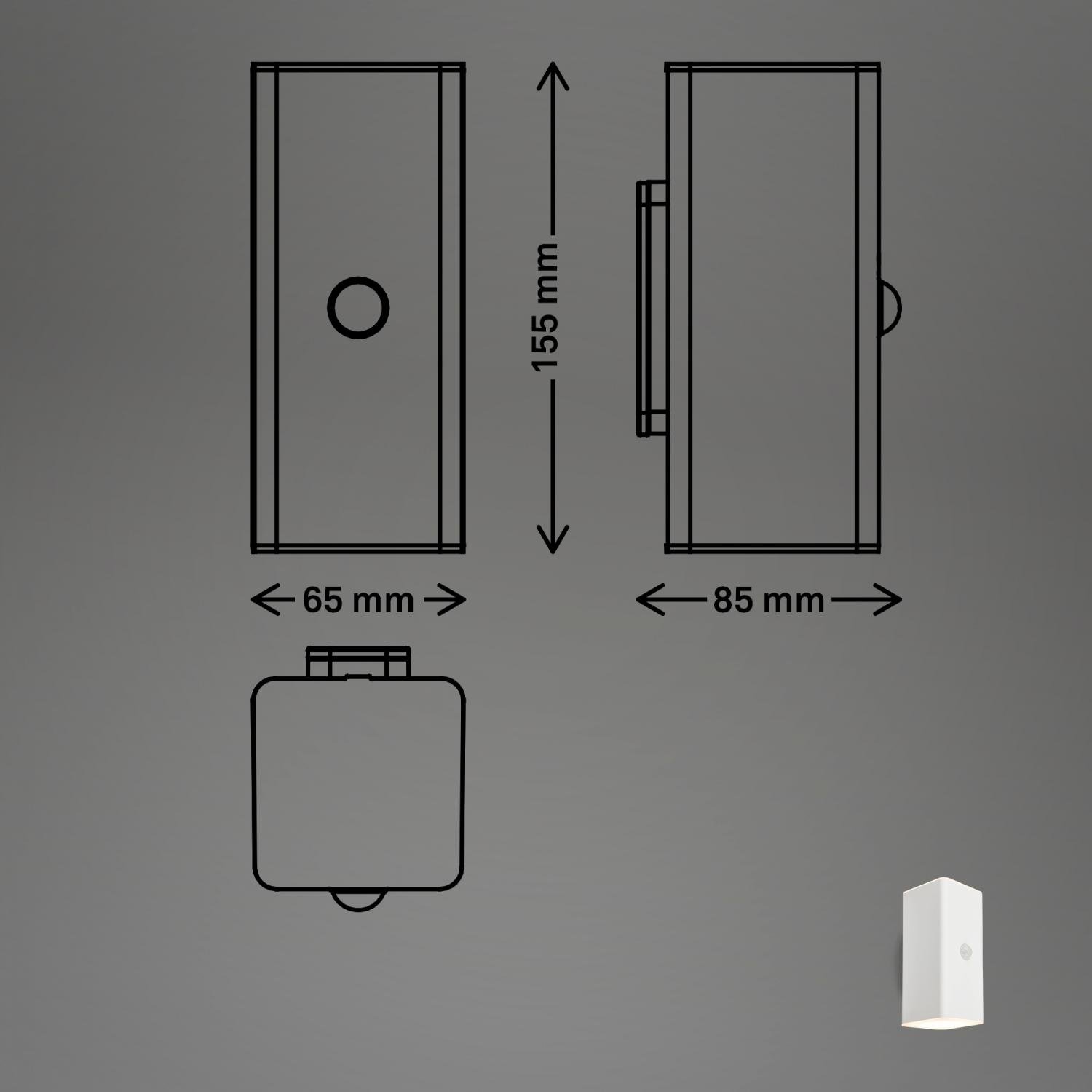 Vynikněte na své terase, balkonu nebo u vchodu s elegantním LED venkovním nástěnným svítidlem BRILONER Kuni. Toto svítidlo spojuje stylový minimalistický design s pokročilými funkcemi pro maximální pohodlí a úsporu energie. Bílá matná barva a kompaktní rozměry (15,5 × 6,5 × 8,5 cm) zaručují, že se svítidlo stane nenápadným, ale efektivním doplňkem každé fasády.
