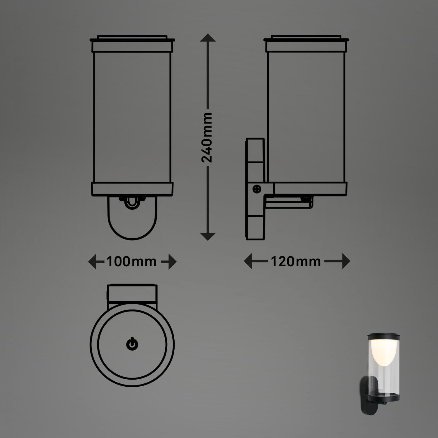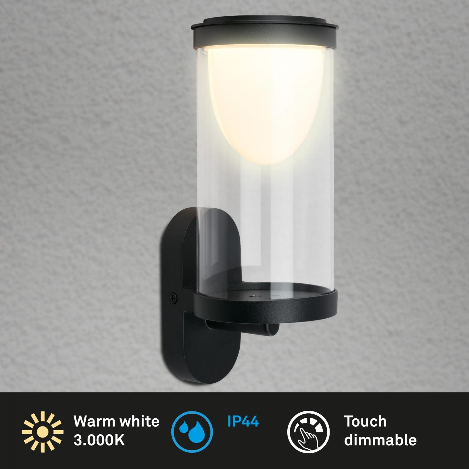BRILONER LED nabíjecí nástěnné svítidlo, venkovní, dotykový vypínač, vyměnitelné baterie, vč. USB-C kabelu, stmívatelné, IP44, černé 3930015
