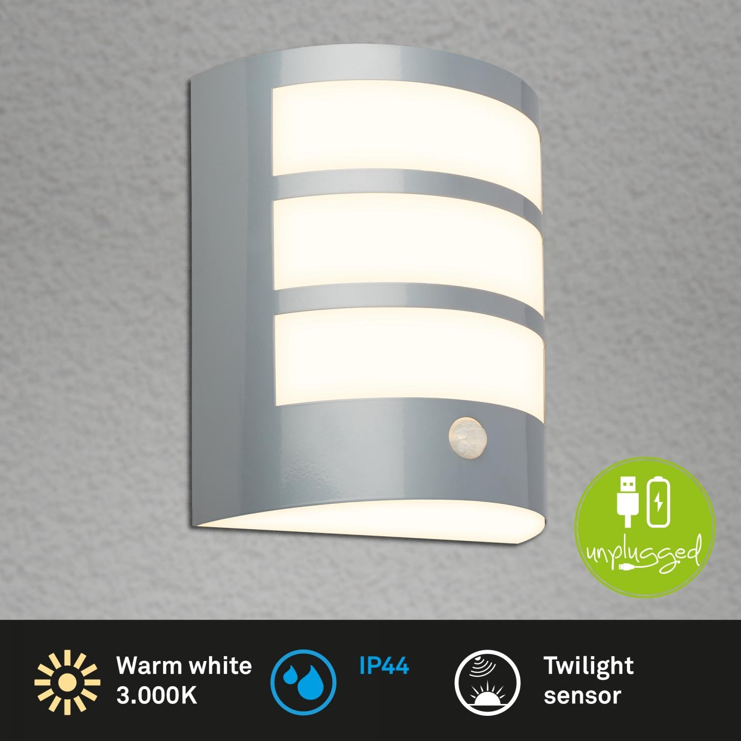 BRILONER LED nabíjecí venkovní nástěnné svítidlo s pohybovým čidlem a soumrakovým senzorem, IP44, matný chromElegantní a chytré osvětlení pro váš exteriérBRILONER LED nástěnné… Read more