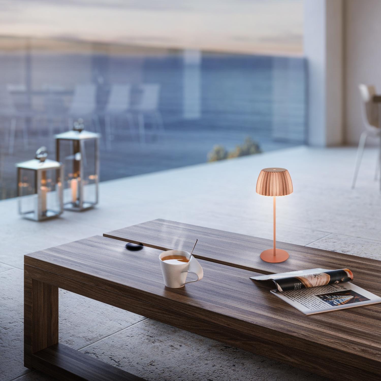 Stolní lampa BRILONER Riffle v měděném provedení přináší do vašeho domova špičkový design a praktičnost v jednom. Je držitelem prestižního ocenění German Design Award Winner 2025 a Best of Design Award 2025 magazínu Schöner Wohnen, což je zárukou vysoké kvality a promyšleného zpracování. S průměrem 14,5 cm a výškou 36,5 cm se stane stylovým doplňkem každého stolu – od obývacího pokoje přes ložnici až po zahradu či balkon.
