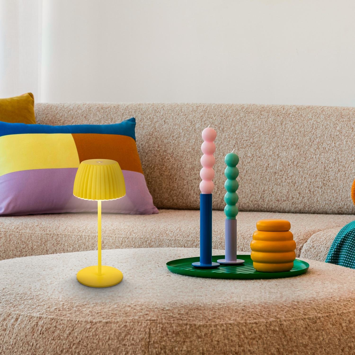 Díky integrovanému akumulátoru a kompaktním rozměrům (Ø8,5 × 20 cm) je lampa ideální nejen na pracovní stůl, noční stolek, ale i na zahradní či balkonový stolek. Bezdrátová svoboda vám umožní užívat si světlo bez omezení, a to až 24 hodin na jedno nabití (doba nabíjení cca 3,5 h přes USB-C).