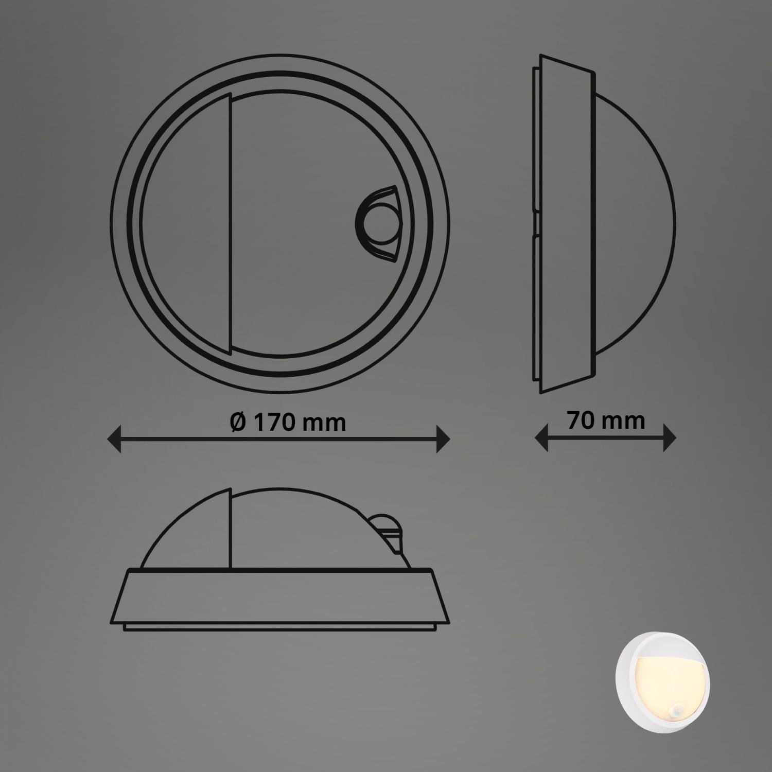 - Kompaktní rozměry: Průměr 17 cm, výška 7 cm – ideální na fasádu, stěnu nebo plot.