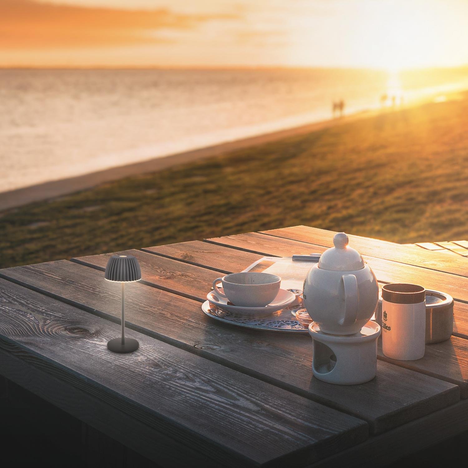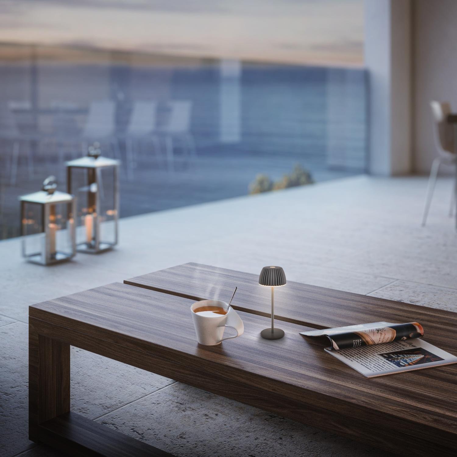 BRILONER Riffle Nano je moderní stolní lampička, která byla oceněna prestižními cenami German Design Award 2025 a Best of Design Award 2025 magazínu Schöner Wohnen. Její nadčasový antracitový vzhled, kompaktní rozměry a precizní zpracování z ní činí ideální doplněk na pracovní stůl, noční stolek, ale i na balkon či zahradní stůl.