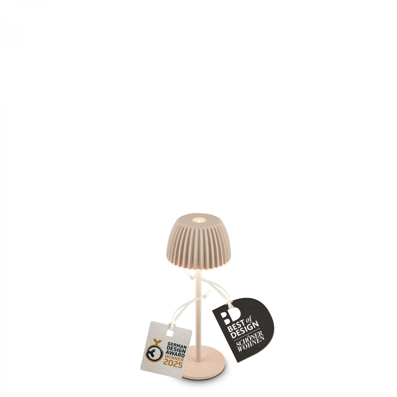 Objevte kouzlo stolní lampičky BRILONER Riffle Nano v béžovém provedení, která získala prestižní ocenění German Design Award Winner 2025 a Best of Design Award 2025 od Schöner Wohnen. Tato lampička je ztělesněním současného německého designu, kde se snoubí funkčnost, úspornost a minimalistická estetika. S kompaktními rozměry (Ø6 x 15,5 cm) je dokonalým doplňkem na noční stolek, pracovní místo i na venkovní stůl.