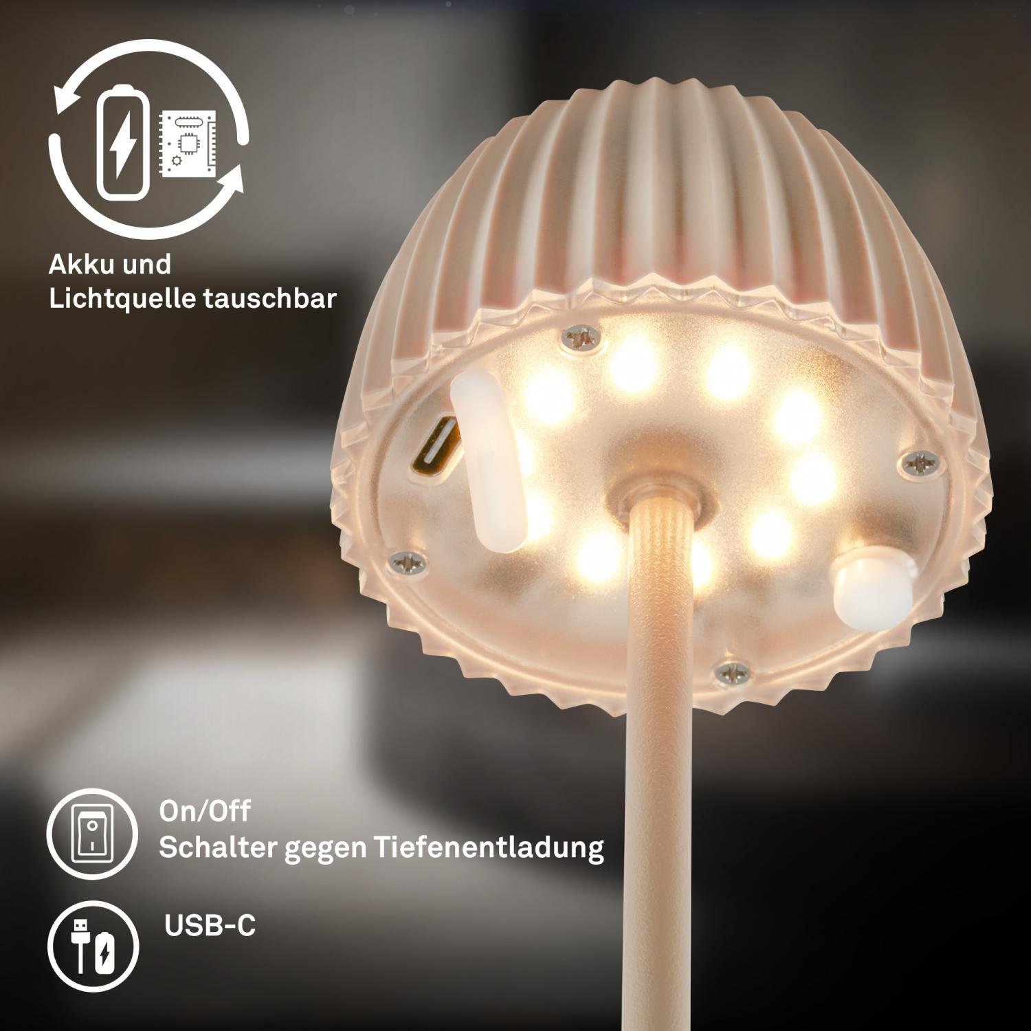 BRILONER Riffle Nano stolní lampička - 1,5W, 130lm, nabíjecí, LED, stmívatelné, dotykový vypínač, German design Award Winner 2025, béžová 7581011