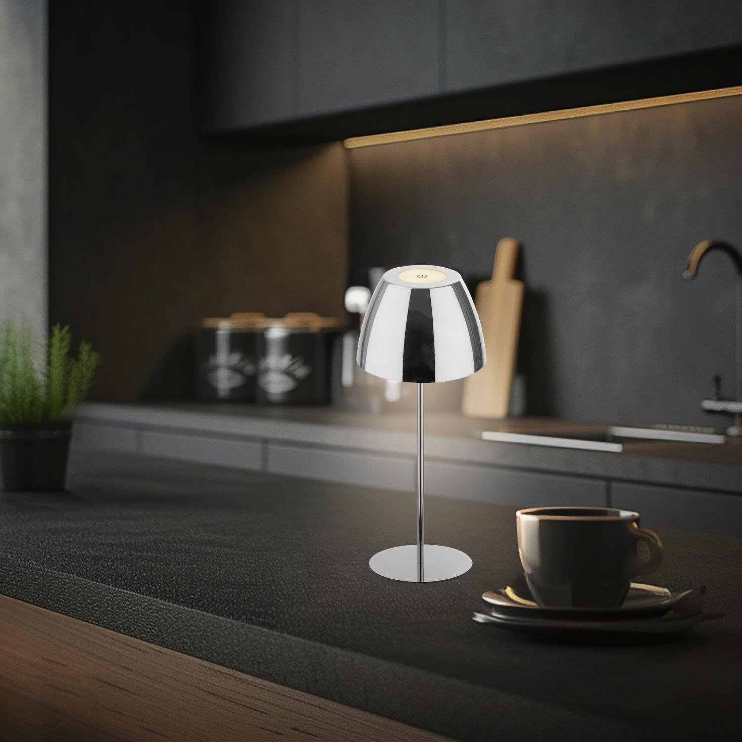 Díky ochraně IP44 doporučuji tuto lampičku i do venkovních prostor, například na zahradní stůl nebo balkon. Stmívatelná funkce umožňuje vytvořit příjemnou atmosféru pro večerní posezení nebo romantickou večeři. Chromová povrchová úprava působí luxusně a snadno se kombinuje s ostatními doplňky.
