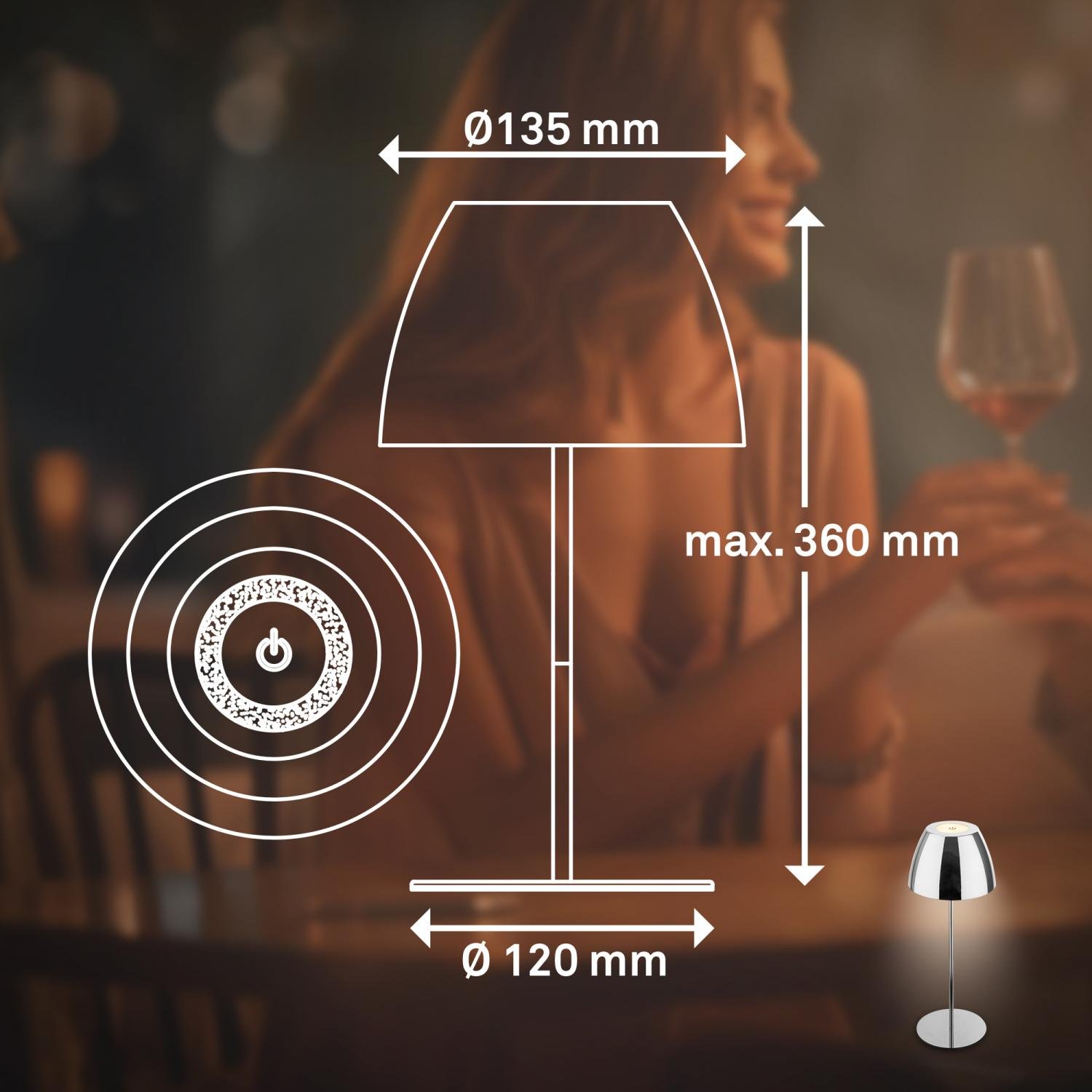 BRILONER Serina LED bezdrátová stolní lampička IP44, stmívatelná, dotykový vypínač, chrom