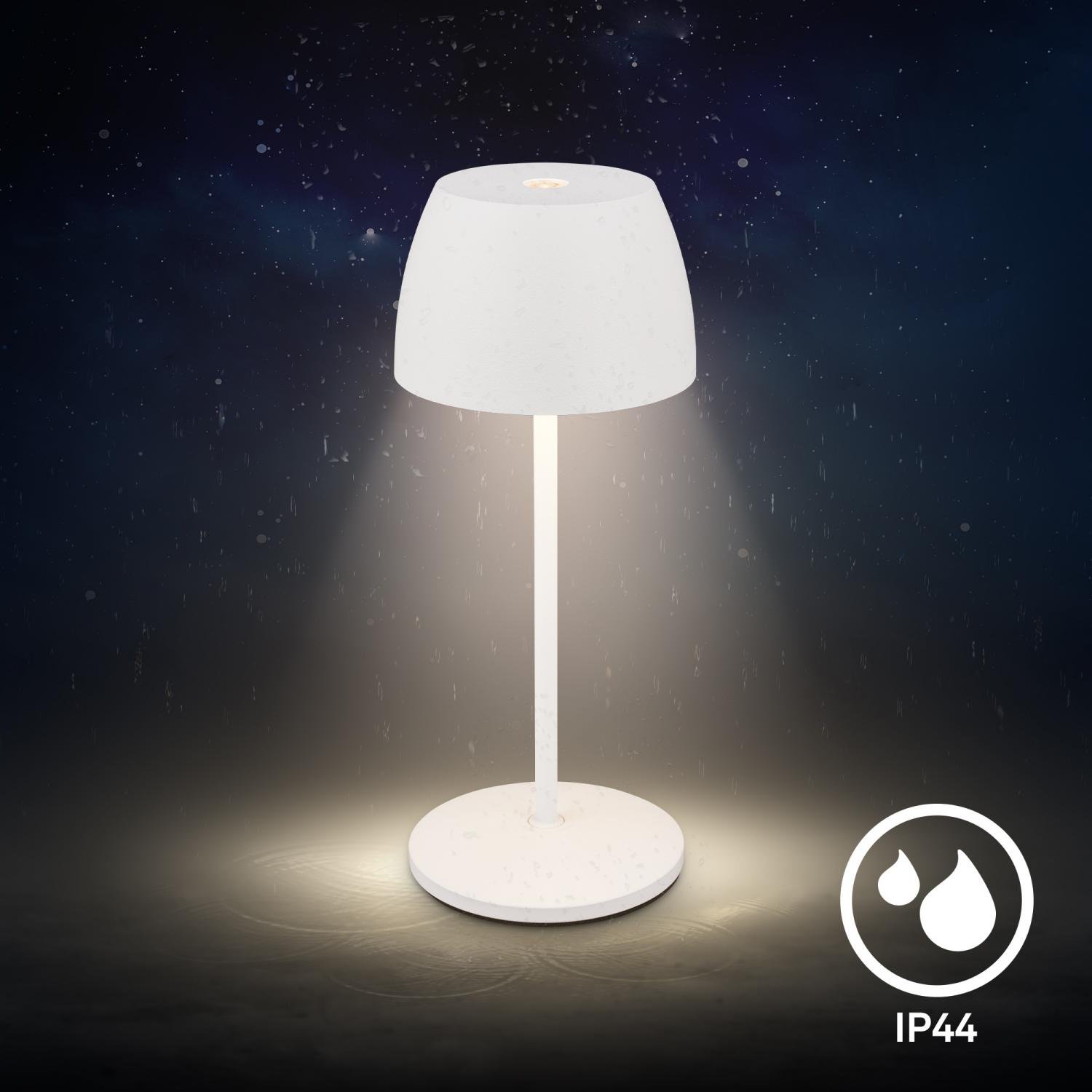 BRILONER Serina Mini LED stolní lampička bezdrátová IP44, stmívatelná, s nabíjecí základnou, bílá