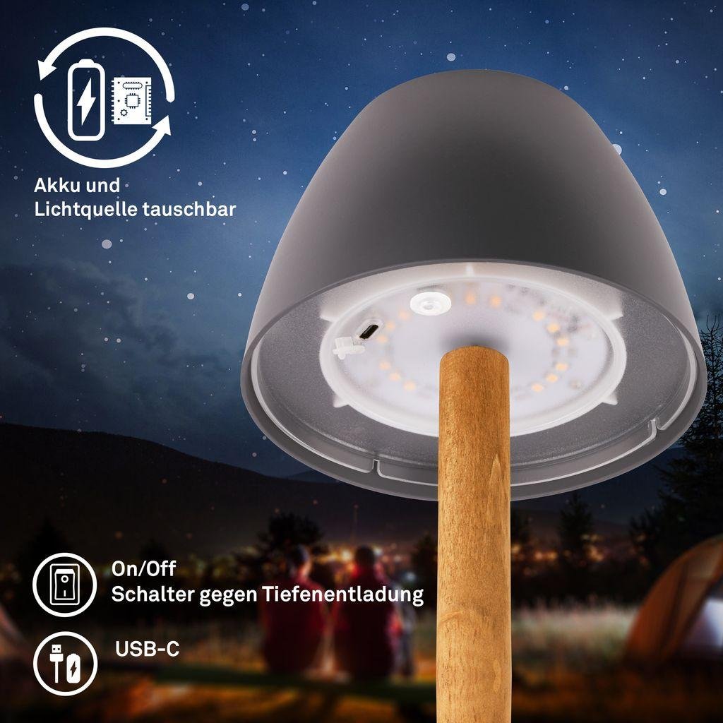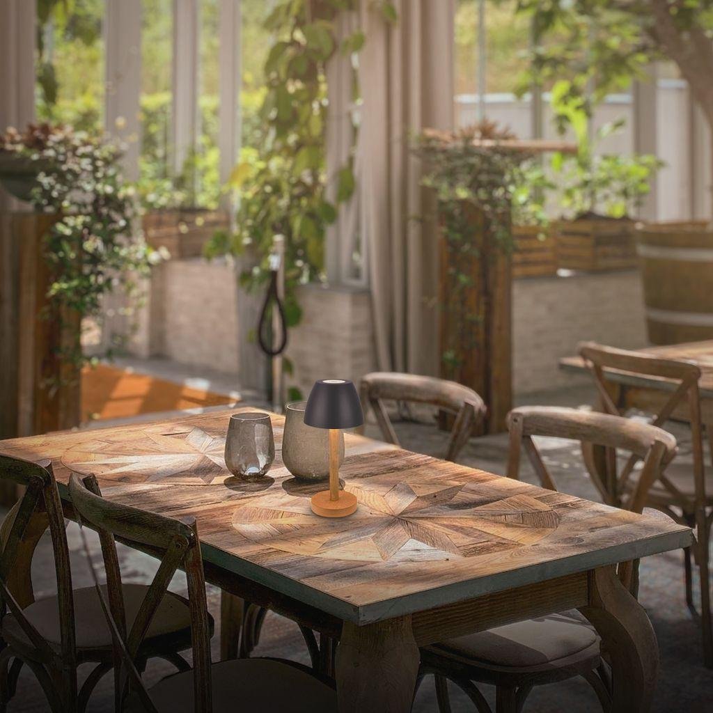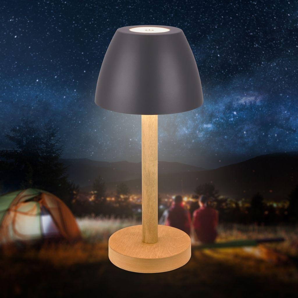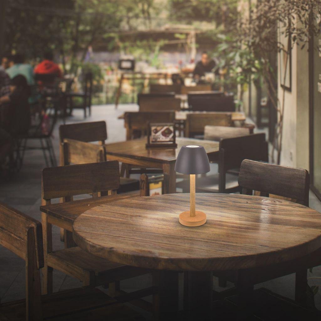 BRILONER Serina Wood stolní lampa - 2,5W, 200lm, bezdrátová, LED, dotykový vypínač, IP44, stmívatelná, antracit/dřevo 7661015