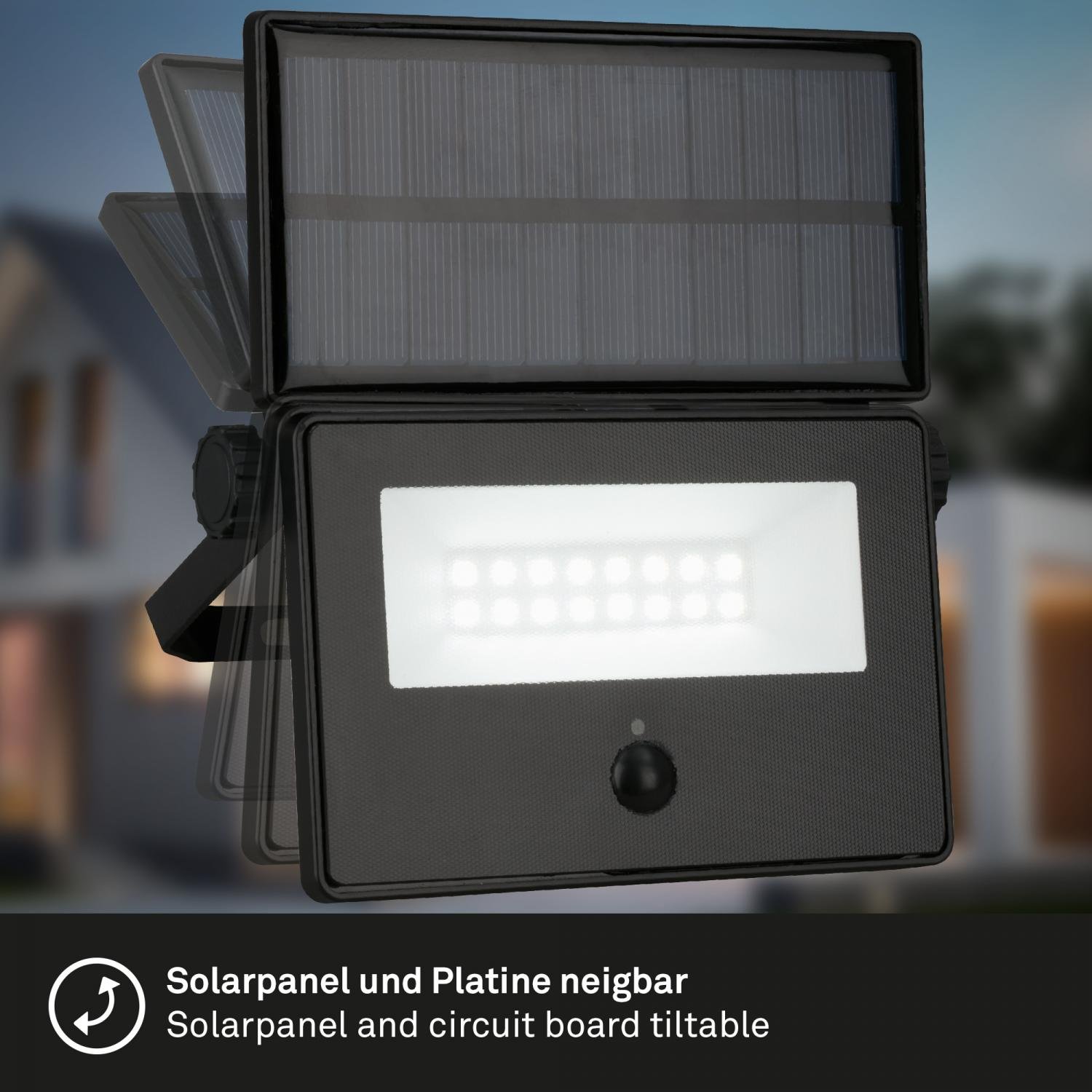 - Nastavitelný sklon – možnost optimálně nasměrovat jak solární panel, tak i světelný modul