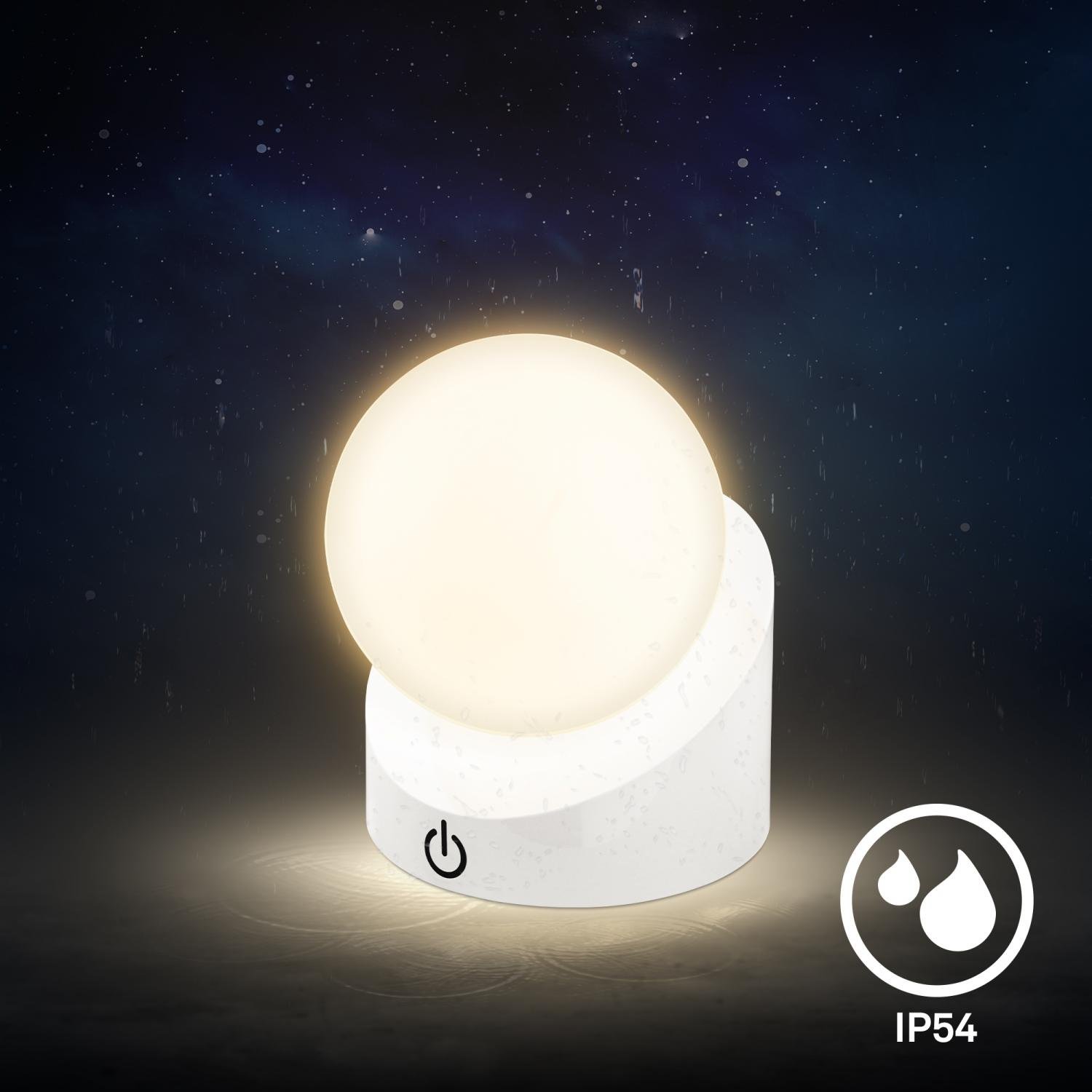 BRILONER Sora Mini LED stolní lampička bezdrátová, IP54, stmívatelná, dotykový vypínač, bílá