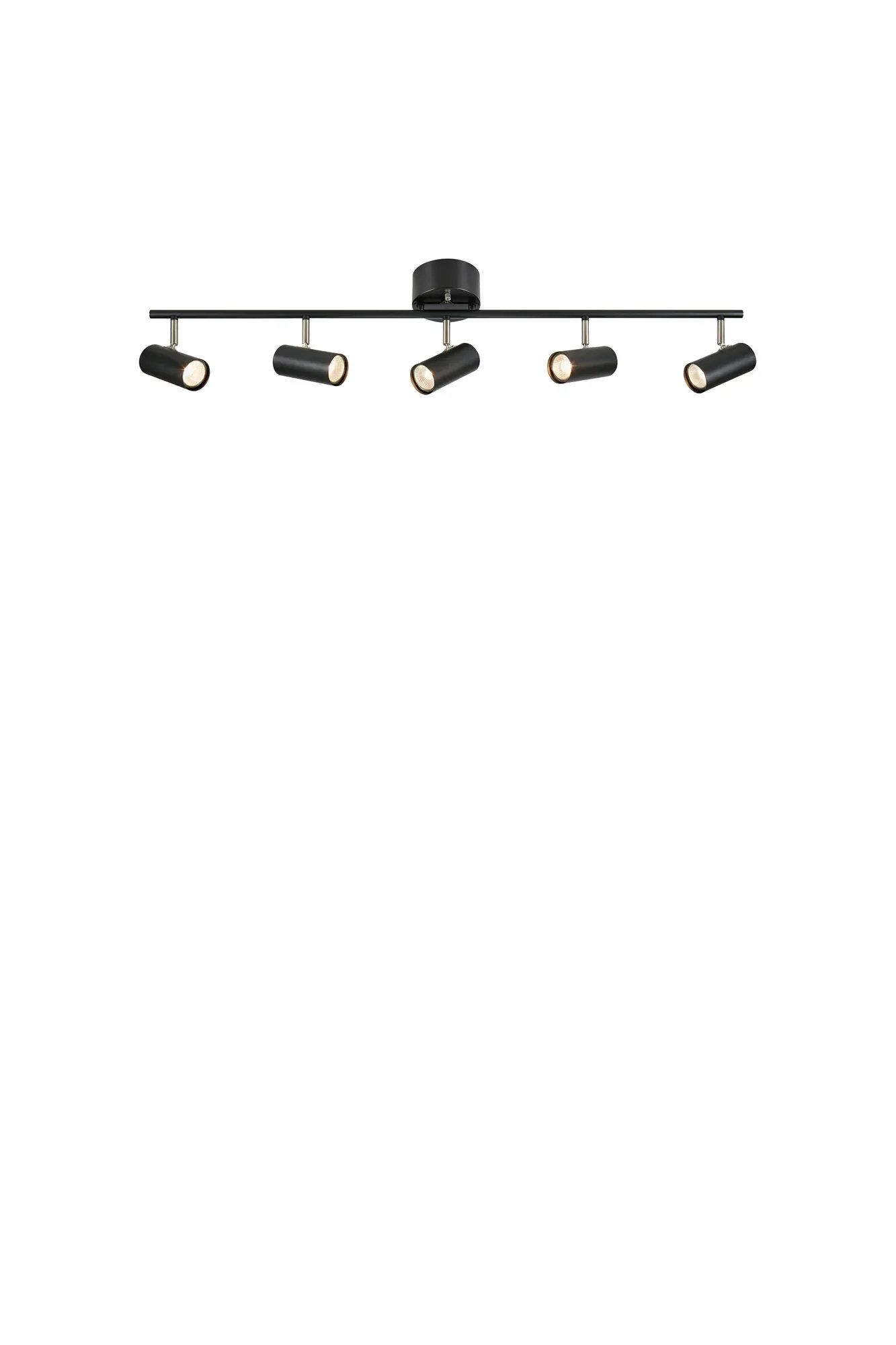 Stropní bodové svítidlo Markslöjd Barcelona v elegantní černé barvě je ideální volbou pro ty, kteří hledají funkční a zároveň designově čisté řešení. Tento model nabízí pět samostatně směrovatelných reflektorů v přímé linii, což umožňuje precizní nasvícení konkrétních zón interiéru – ať už jde o pracovní desku v kuchyni, galerii v chodbě nebo pracovní plochu v kanceláři.